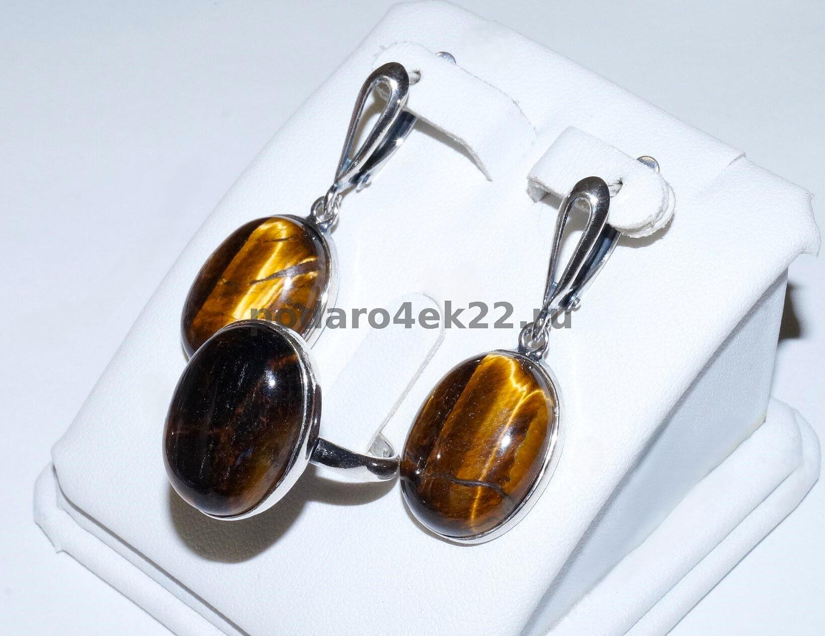 Комплект с натуральным тигровым глазом в нейзильбере (новое серебро) с родиевым покрытием. Проба отдела технического контроля (ОТК). Длина серёжек 4,2 см, Английский замочек. Размер перстня 19. Камень 2 см. Производство Россия.