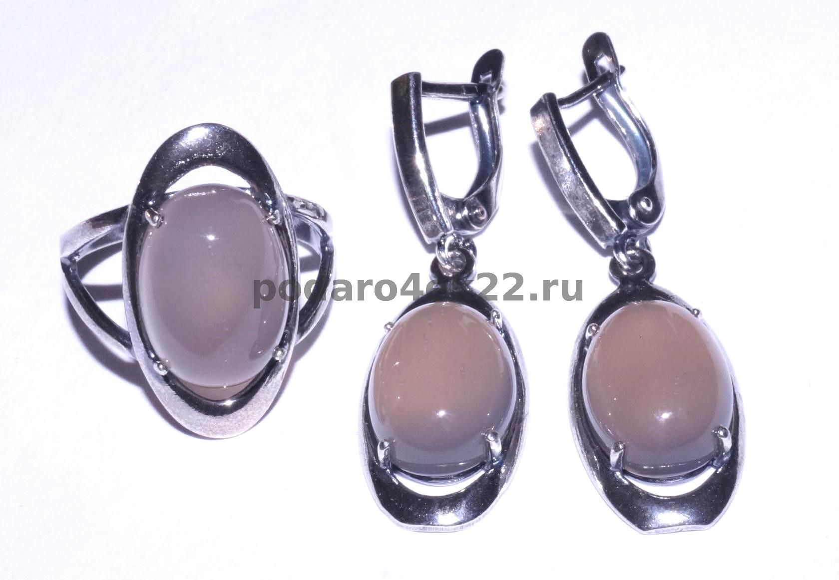 нк-0136. Серьги и кольцо с бразильским агатом. 17 разм.
