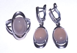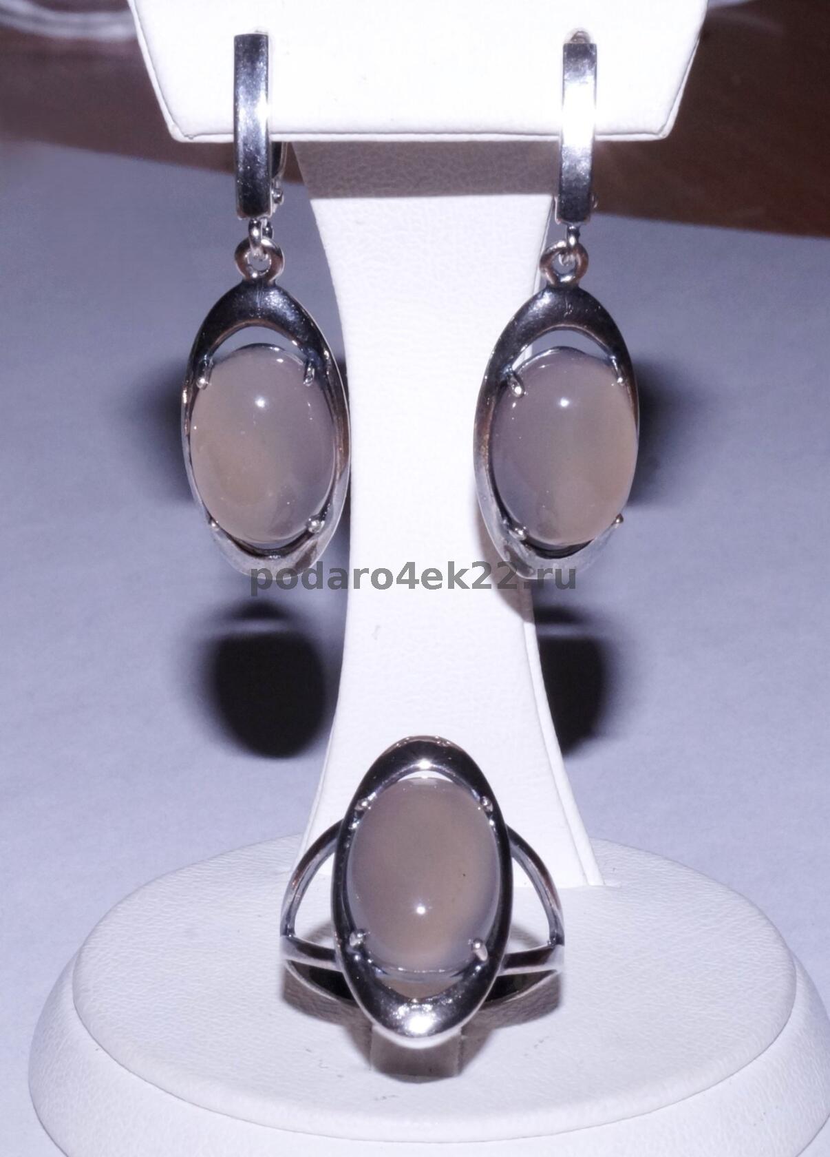 Серьги и кольцо с натуральным бразильским агатом. Размер кольца 17. Длина сережек 3,9 см. Камни 1,8 см. Гипоаллергенный сплав на основе серебра, с родиевым покрытием. Проба отдела технического контроля (ОТК). Производство Россия.