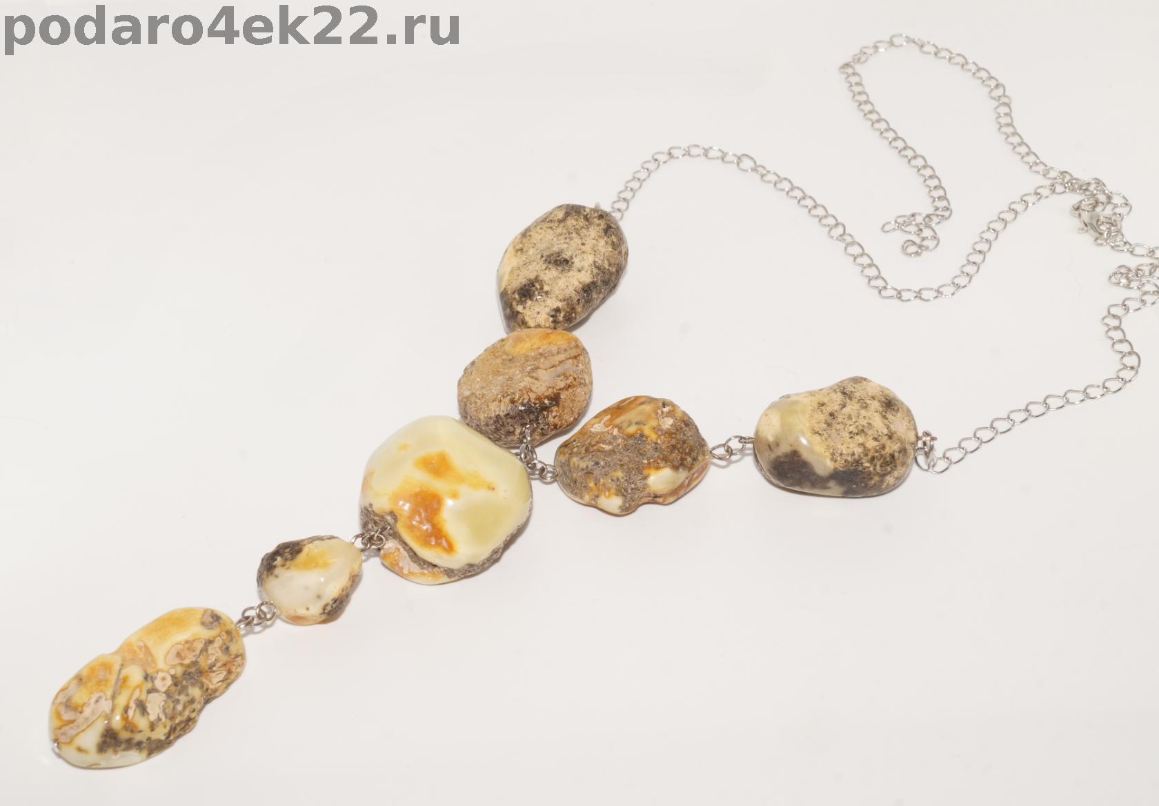 Авт-011. Лечебное крупное колье из перепелиного янтаря природной формы.