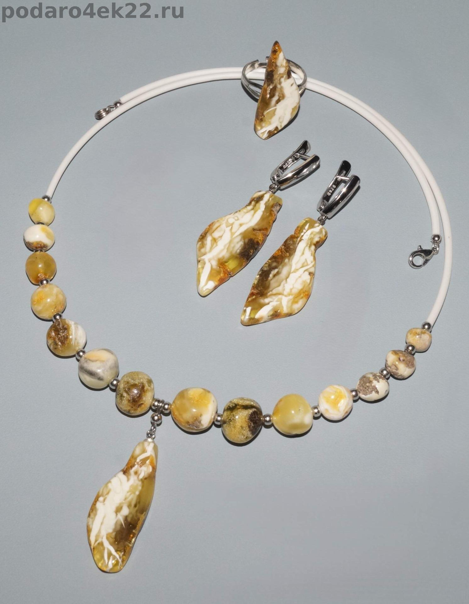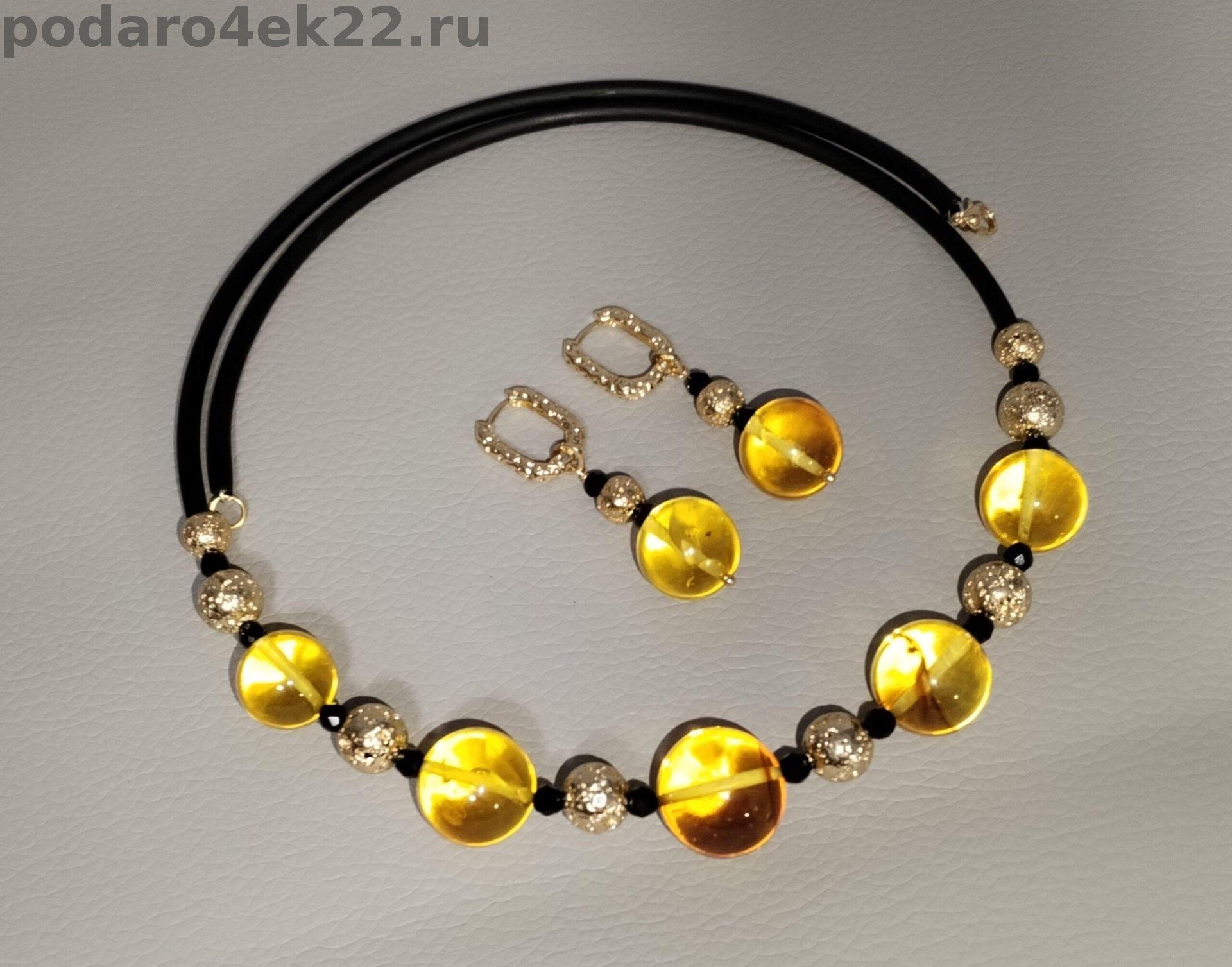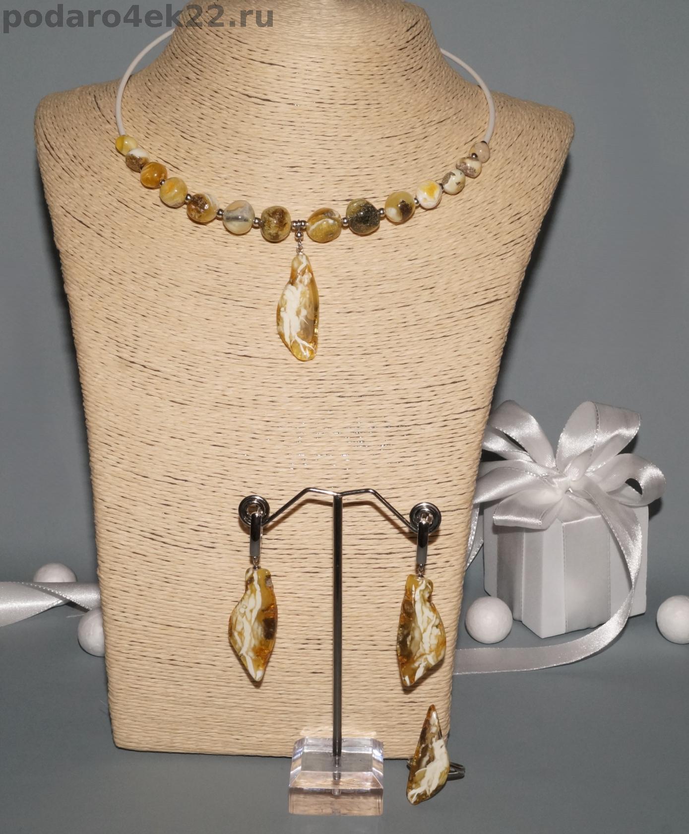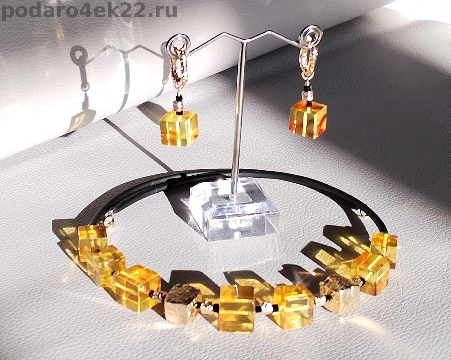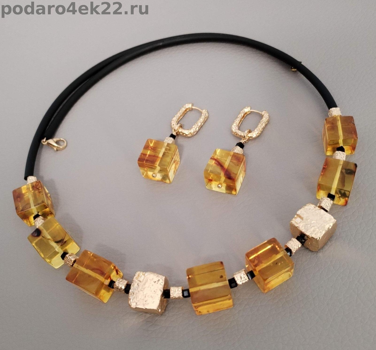 Авт-002. Авторский комплект "Золотая матрица" из янтаря.