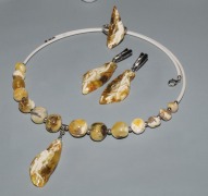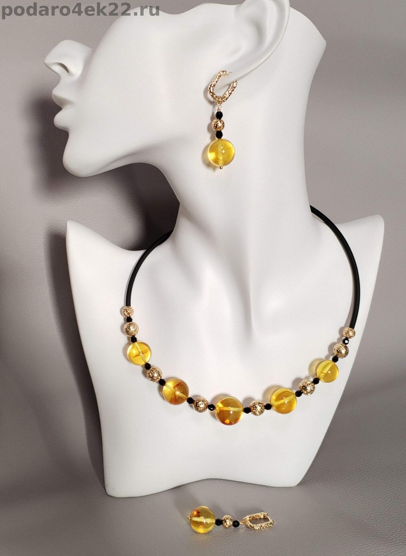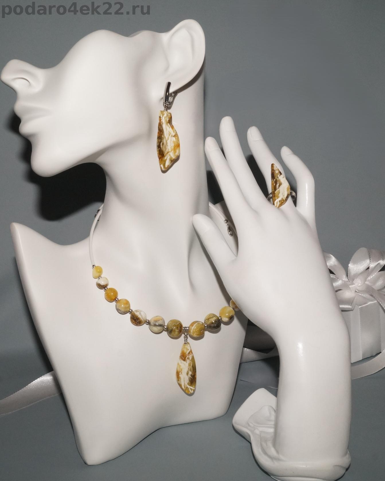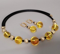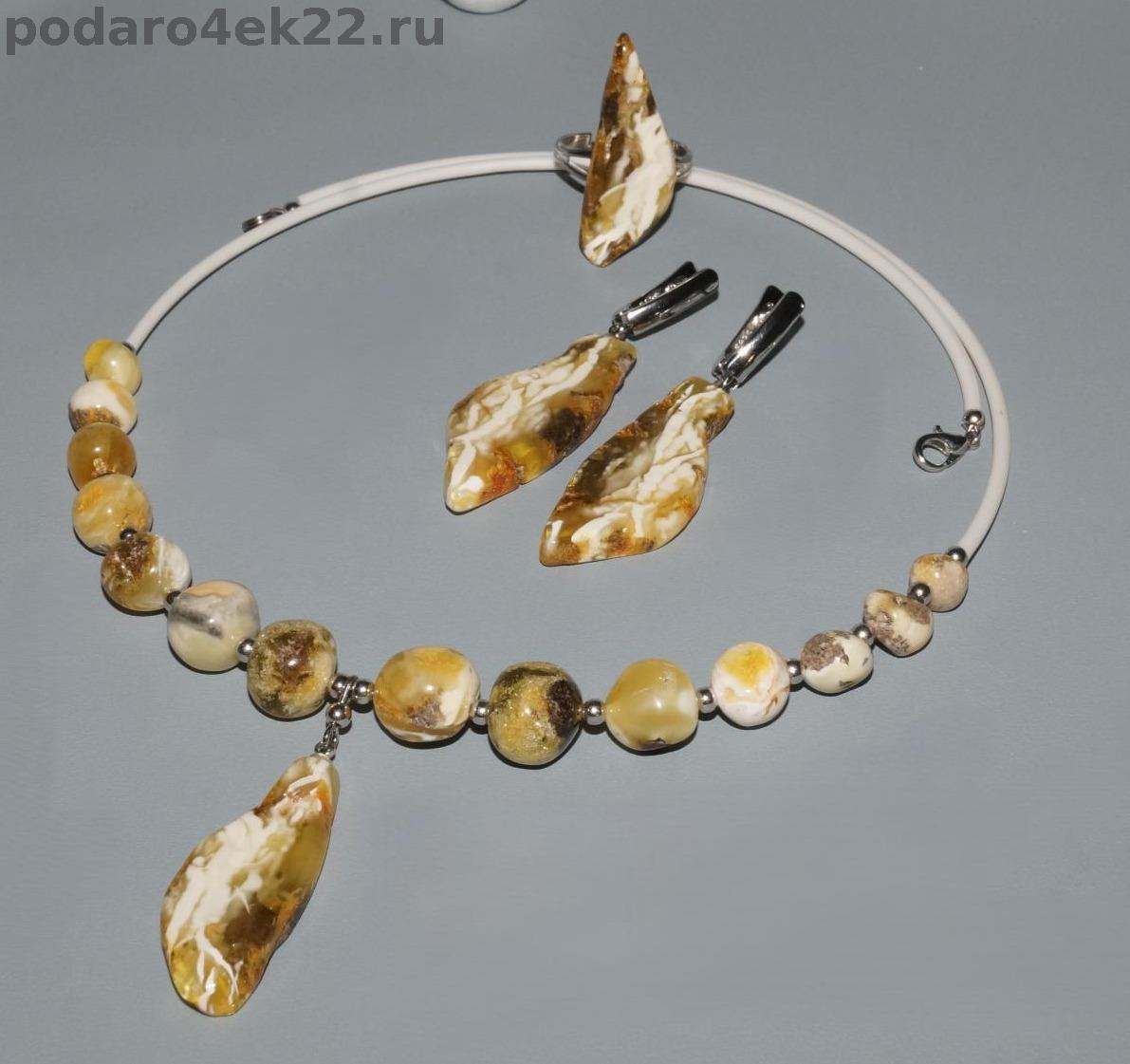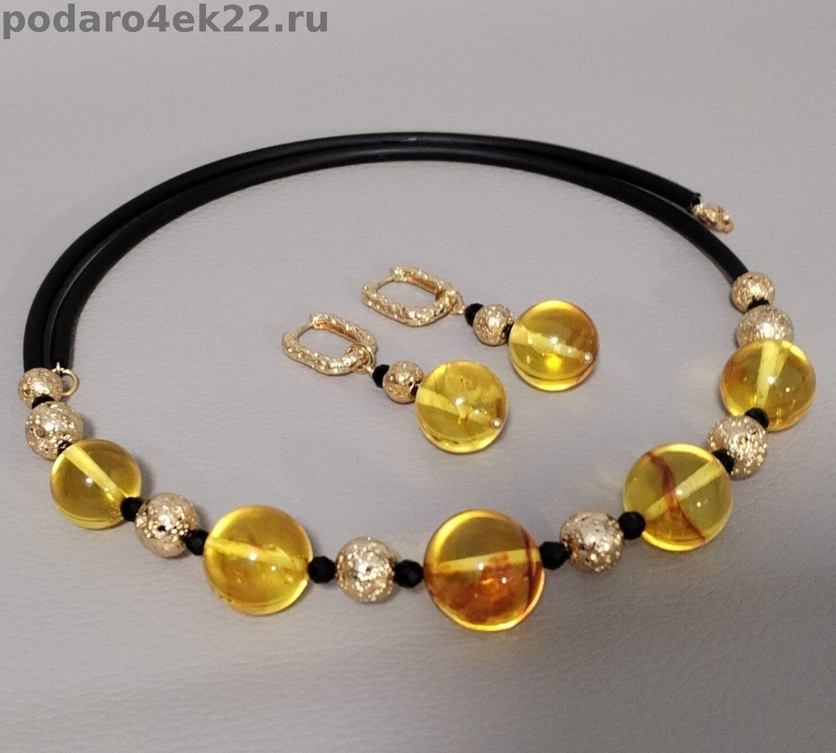 Авт-002. Авторский комплект "Золотая матрица" из янтаря.