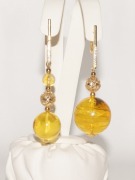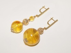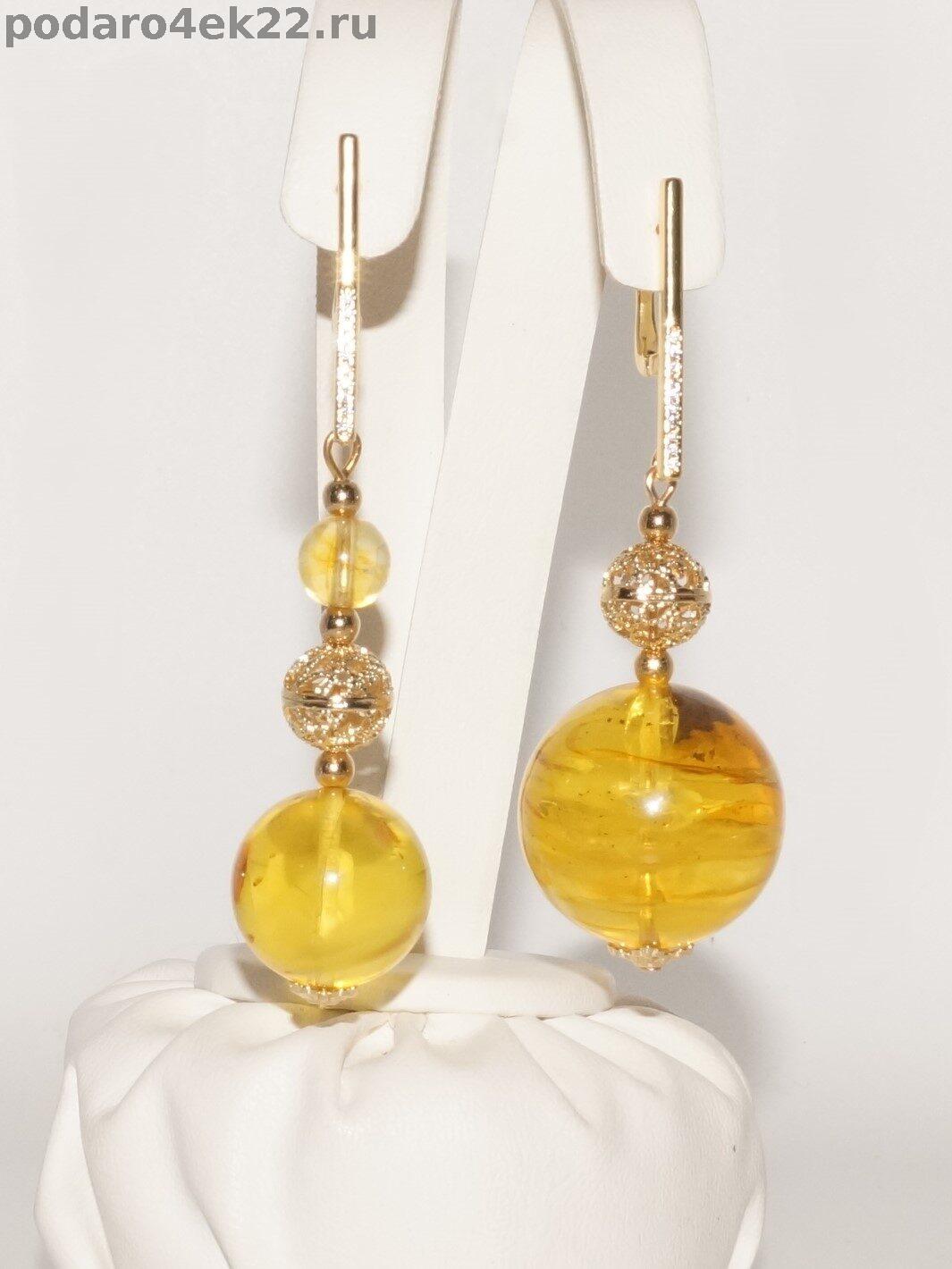 Авт-015. Крупные ассиметричные серьги Шары с янтарем.