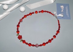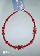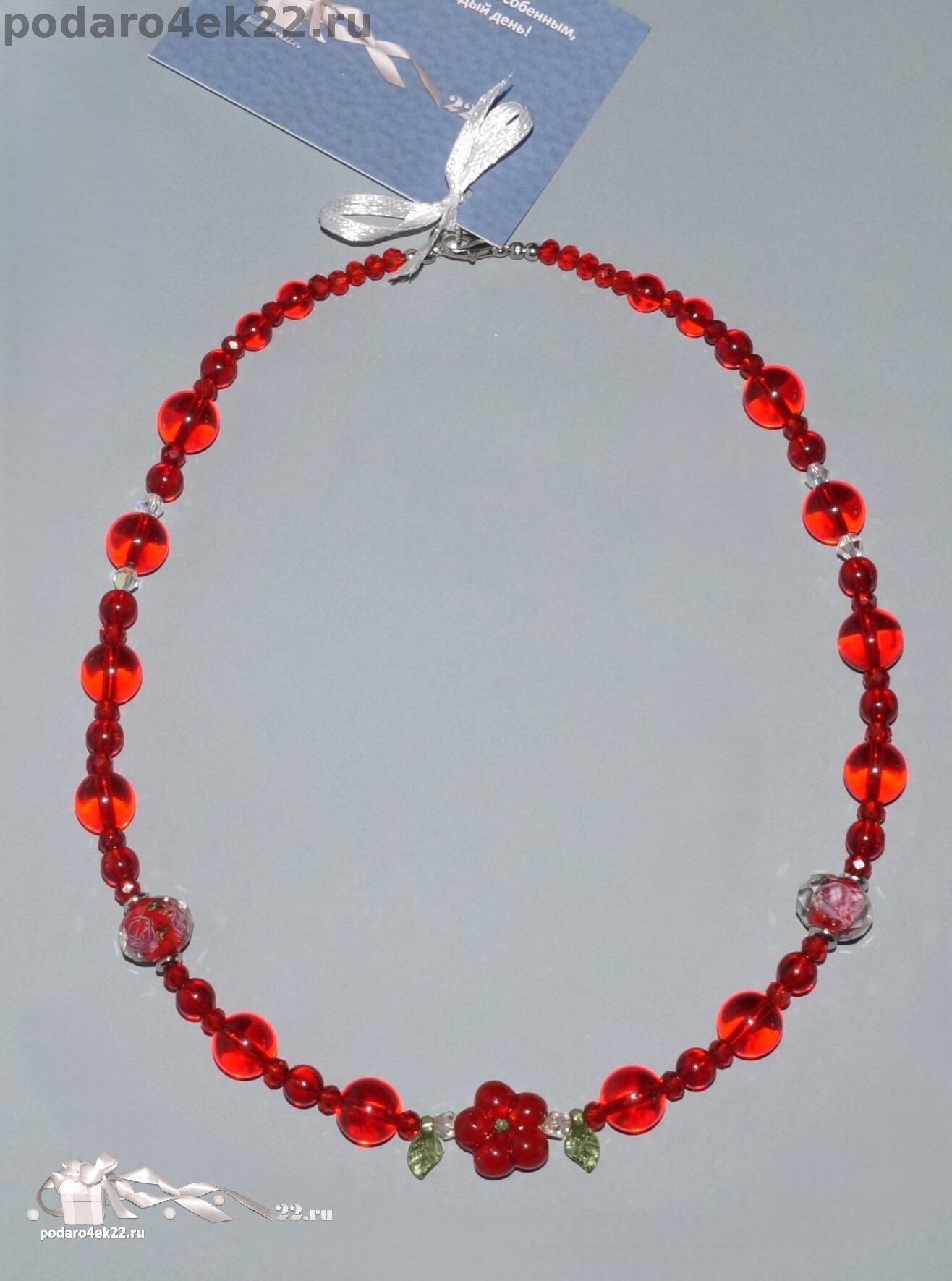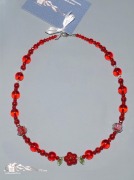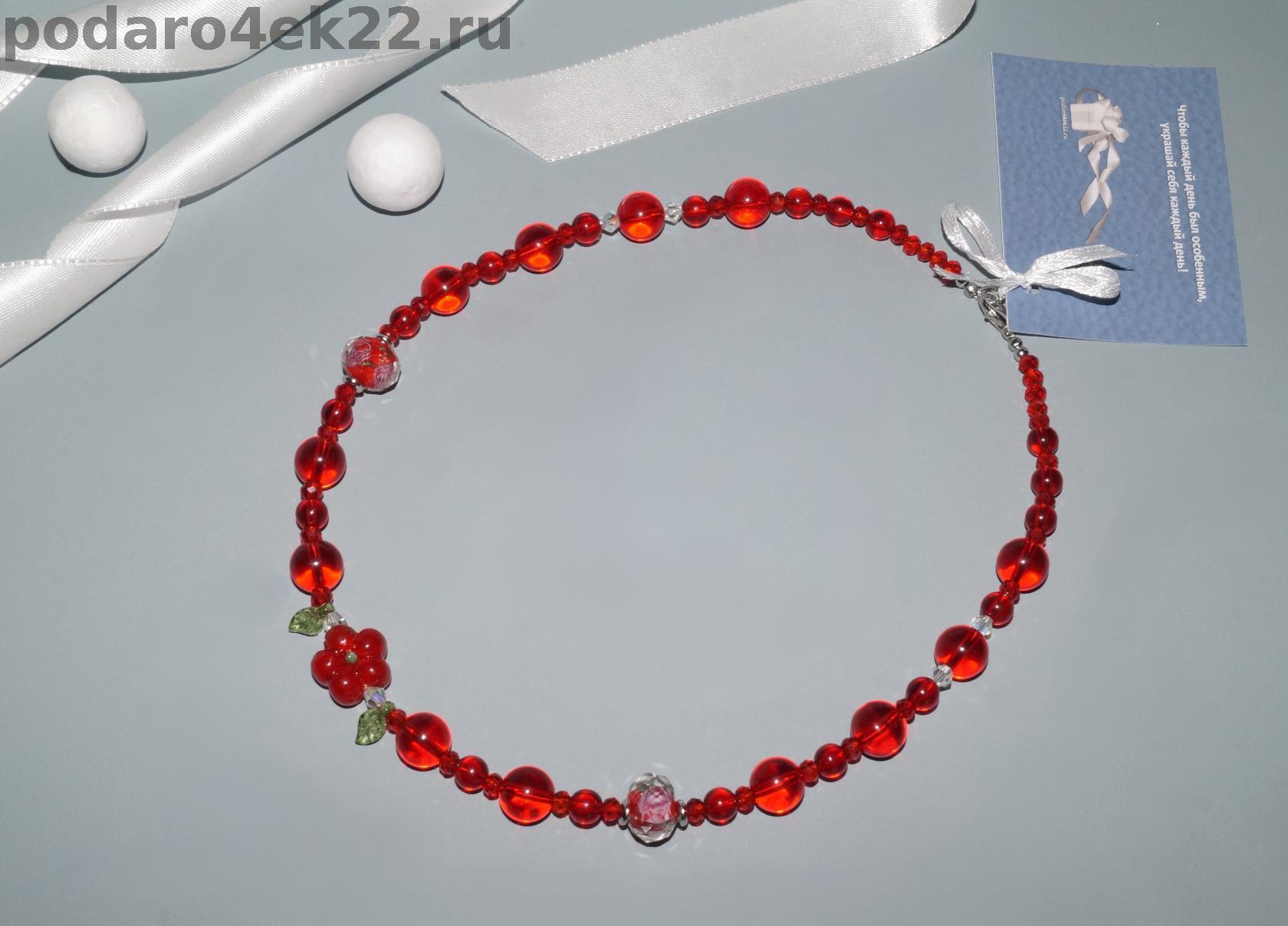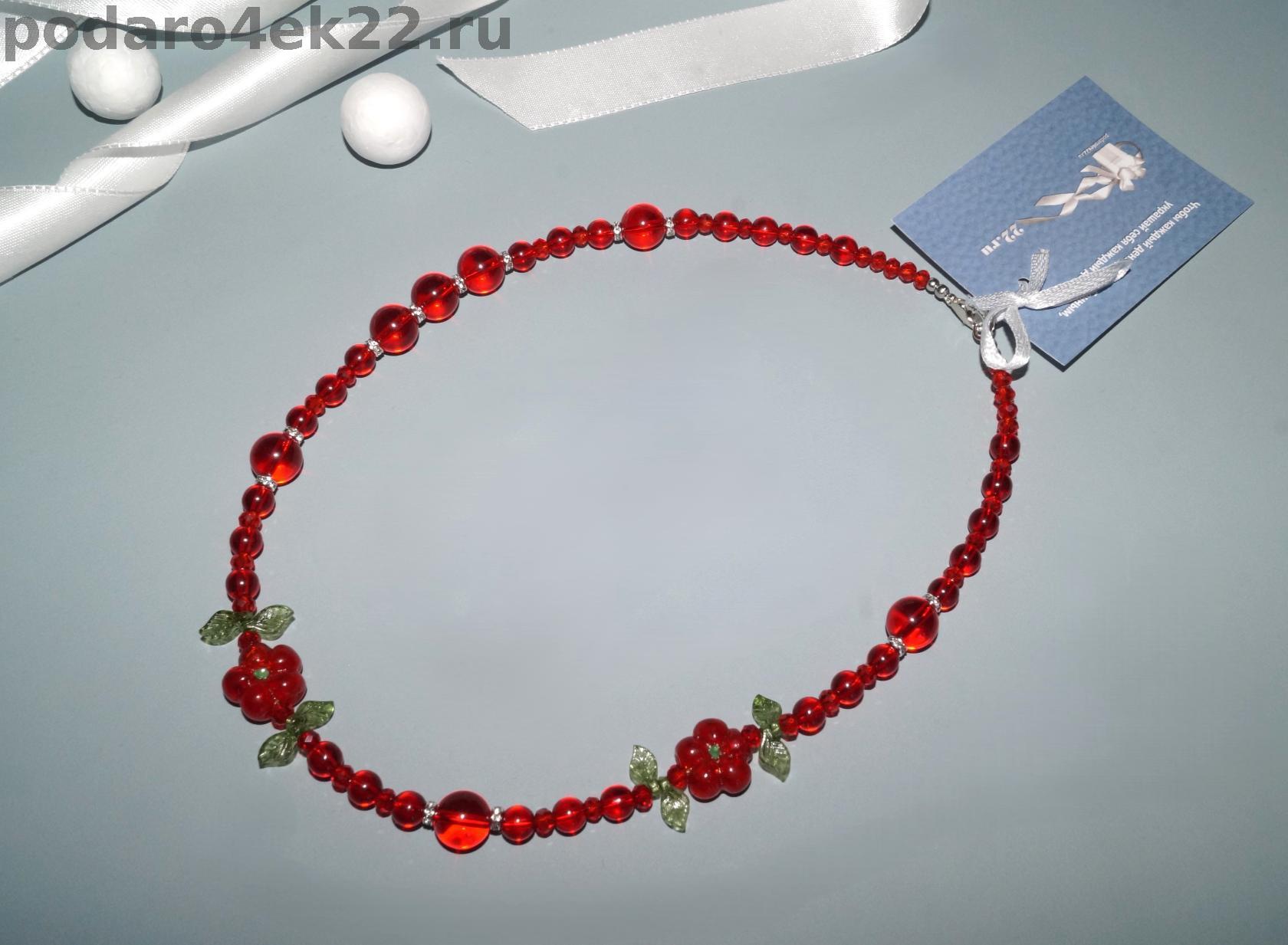 Авт-025. Чокер "Алые мечты" с алыми шариками и цветочками из ювелирного стекла.