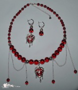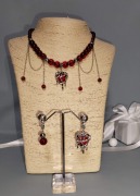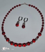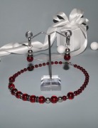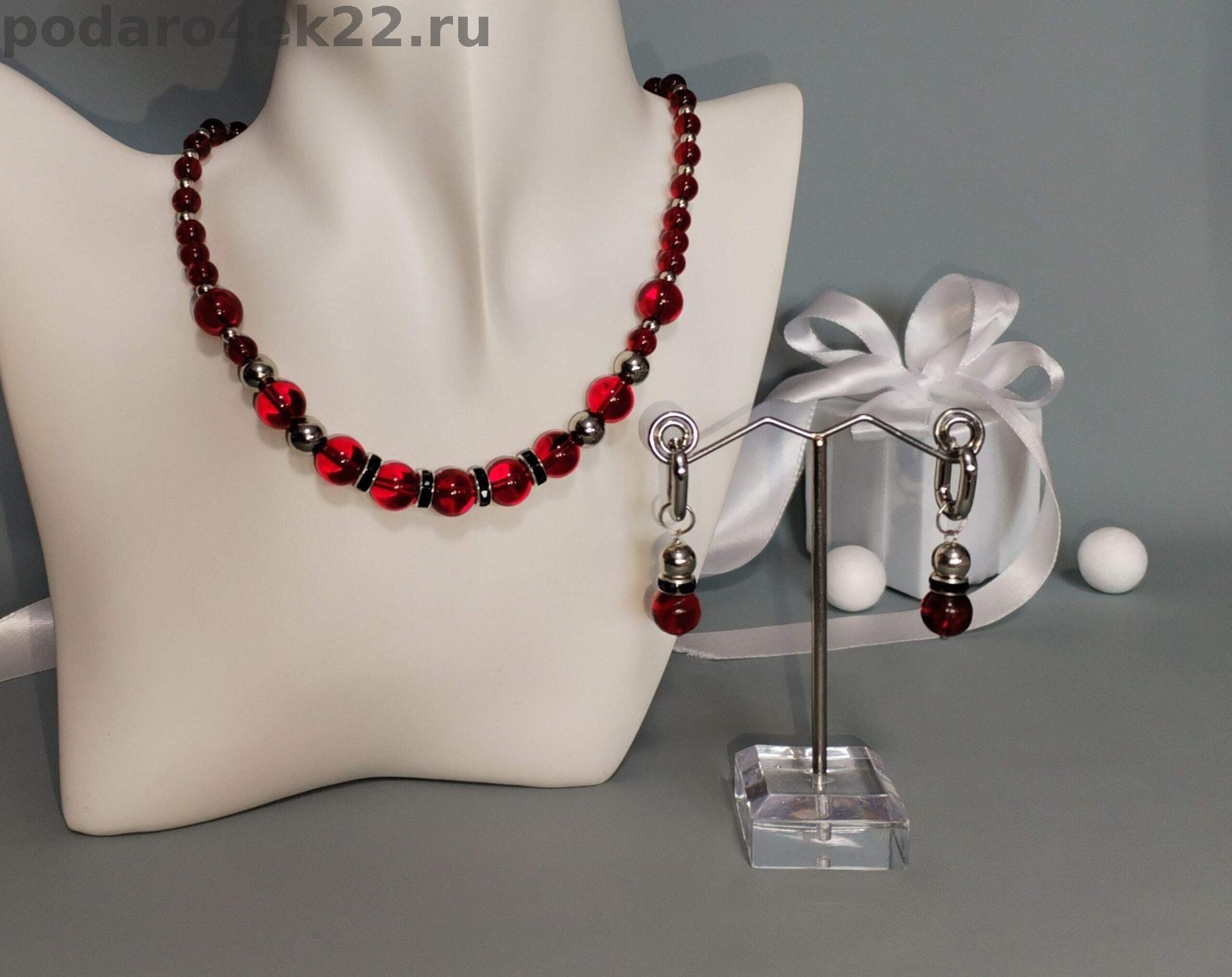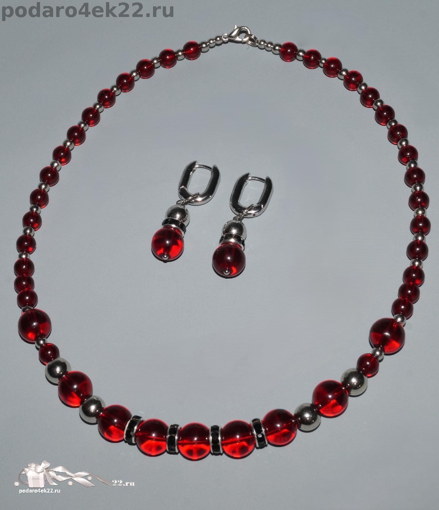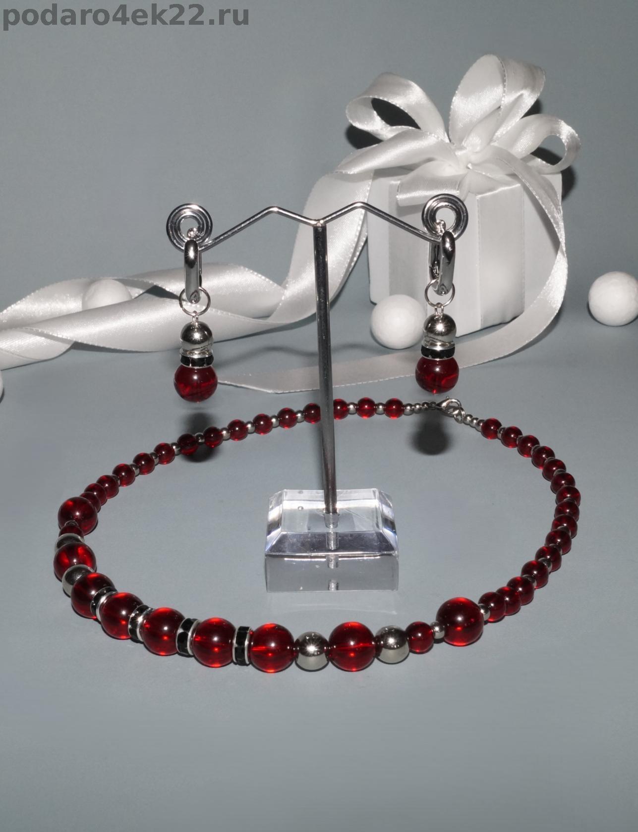 Авт-025. Чокер "Алые мечты" с алыми шариками и цветочками из ювелирного стекла.