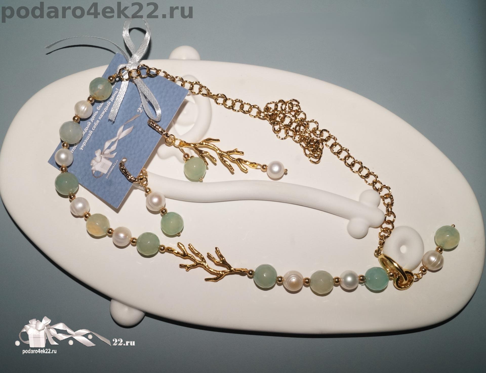 Авт-010. Длинные бусы, колье - сотуар из натуральных камней на цепочке.