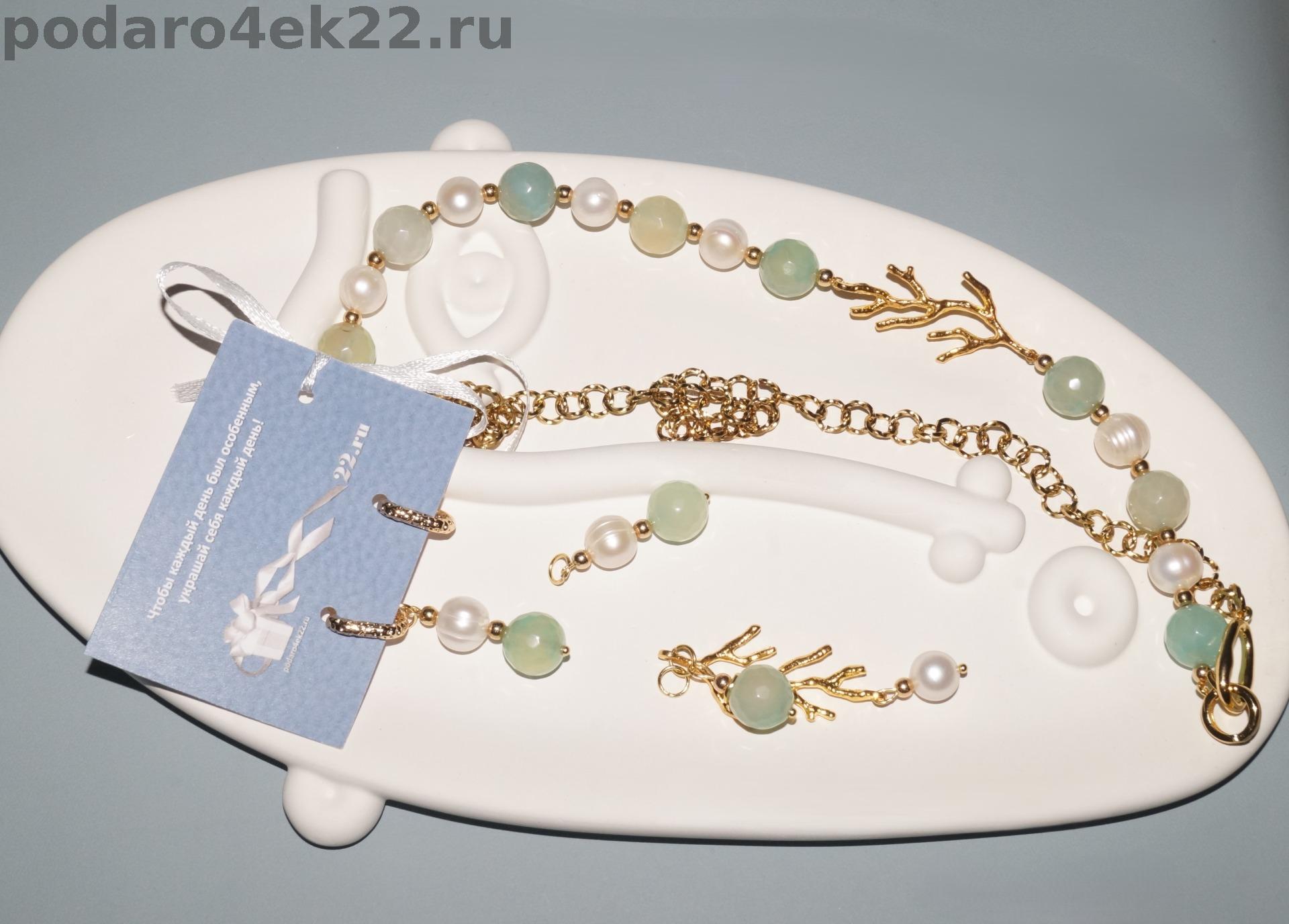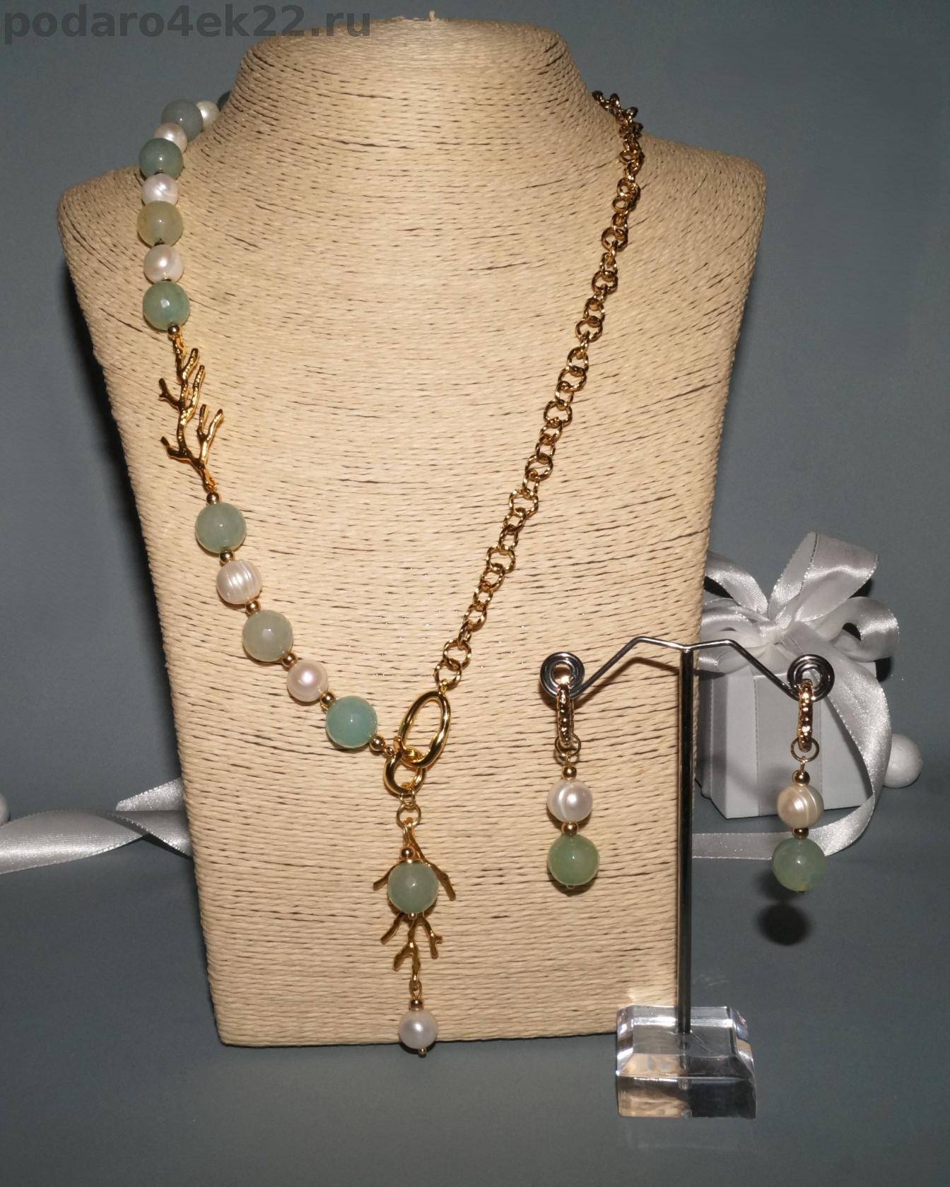 Авт-009. Комплект-трансформер "Нежность весны" с халцедоном и жемчугом.