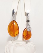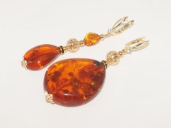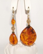 Авт-013. Длинные крупные ассиметричные серьги с янтарем.