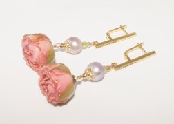 Авт-018. Длинные серьги "Розы с розовым жемчугом, хризолитами и розами.