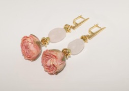 Авт-017. Длинные серьги "Розы с розовым кварцем, хризолитами и розами.