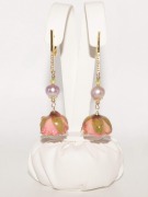 Авт-018. Длинные серьги "Розы с розовым жемчугом, хризолитами и розами.