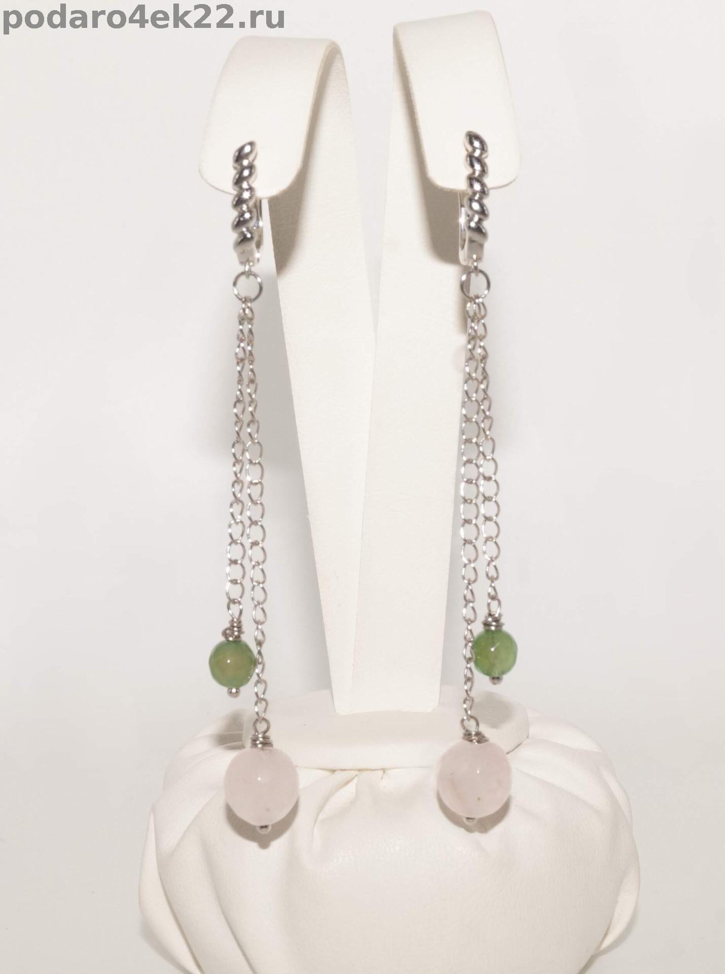 Длинные серьги цепочки с натуральными граненными камнями: розовым кварцем и зеленым агатом. Длина серёжек 8,8 см. Размер камней: агат 6 мм, розовый кварц 1 см. Авторская ручная работа.