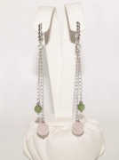 Авт-020. Длинные серьги цепочки с розовым кварцем и зеленым агатом.