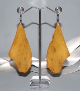 Авт-023. Очень крупные серьги из срезов матового янтаря.
