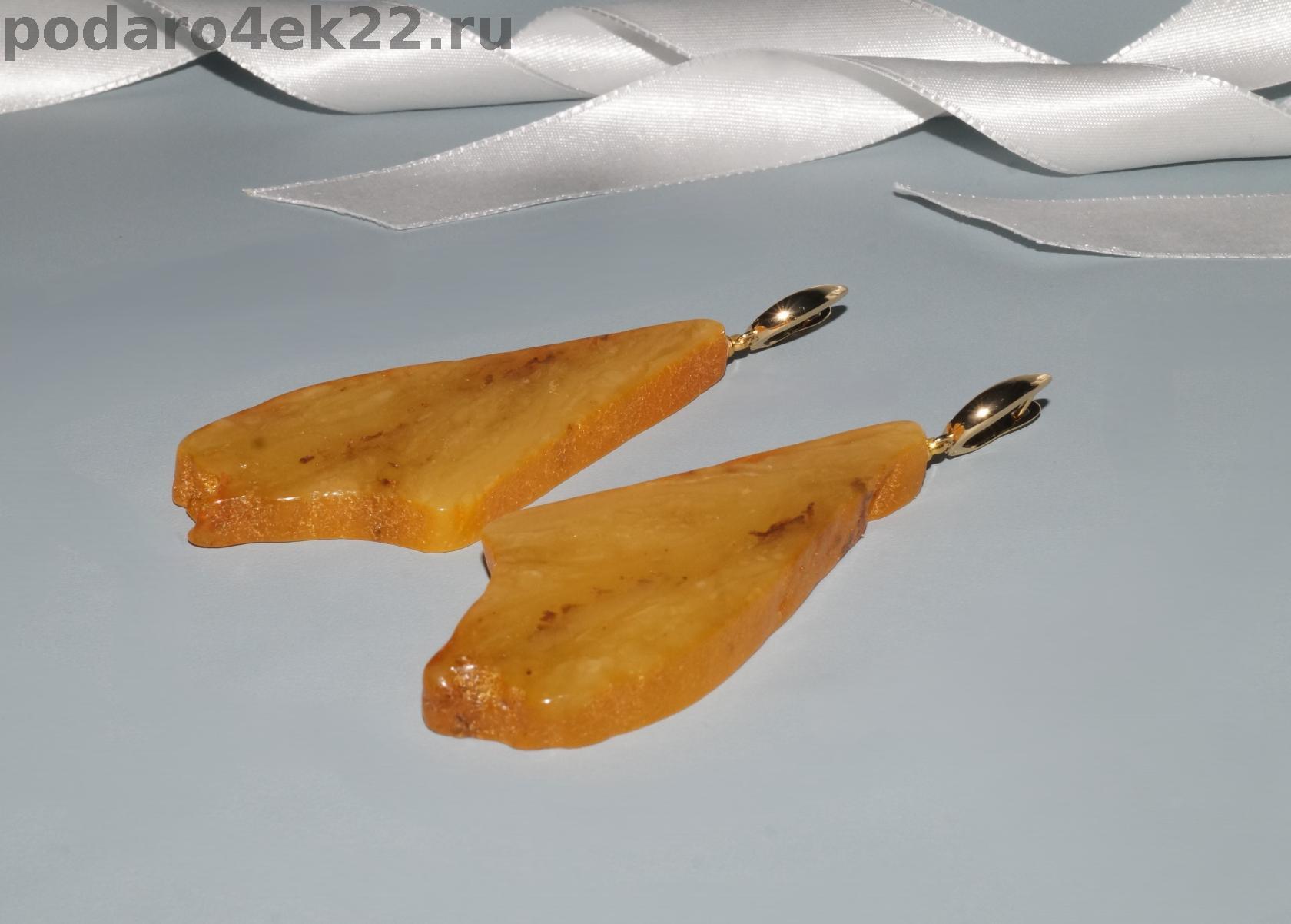 Очень крупные длинные серьги из срезов натурального матового пейзажного янтаря природной формы с включениями. Серьги длиной 9,5 см. Камни 7,4 х 3,4 см. Спилы одного камня. По бокам сохранена природная корочка. Янтарь природный балтийский. Вес 26 гр. Фурнитура позолота. Авторская ручная работа.