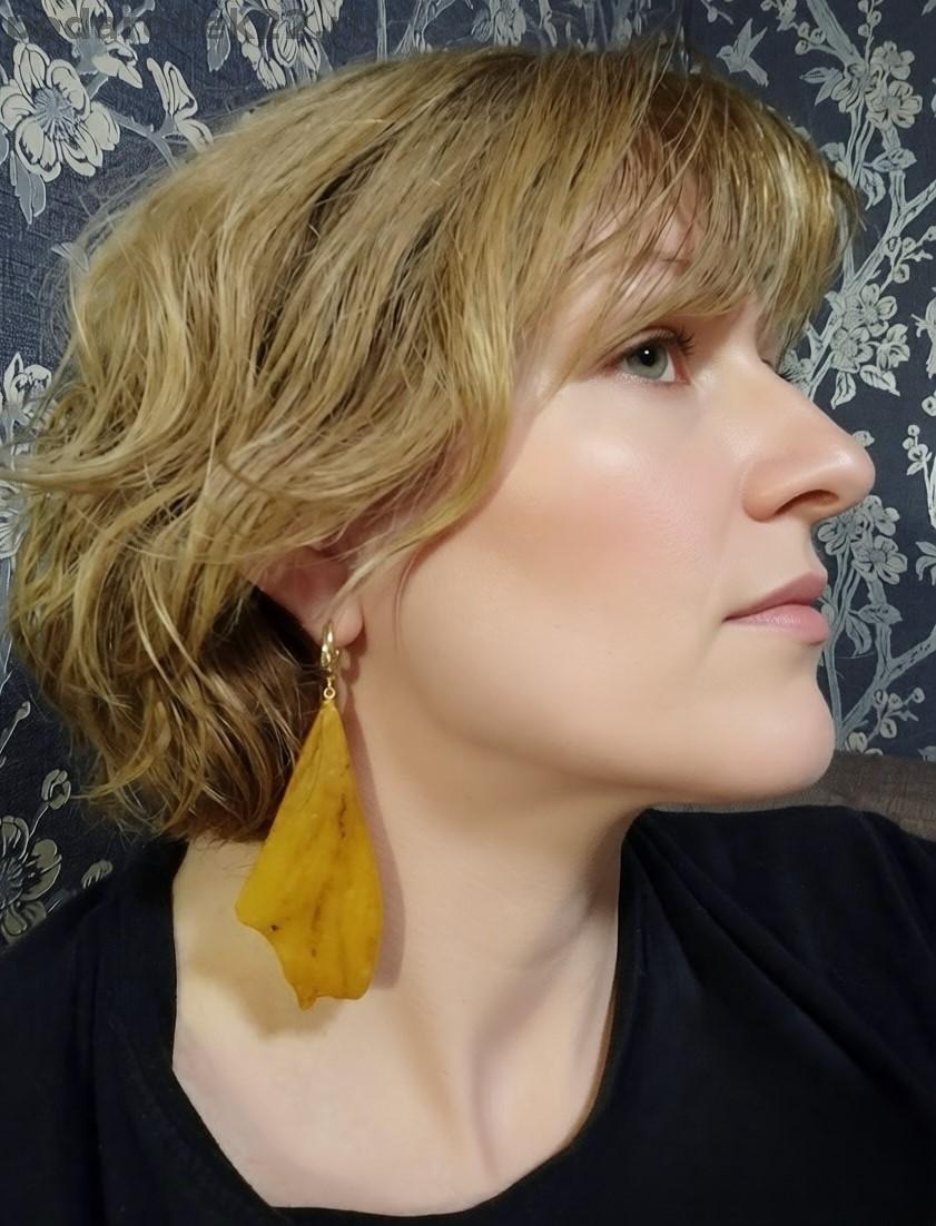 Авт-024. Очень крупные серьги из срезов пейзажного янтаря.
