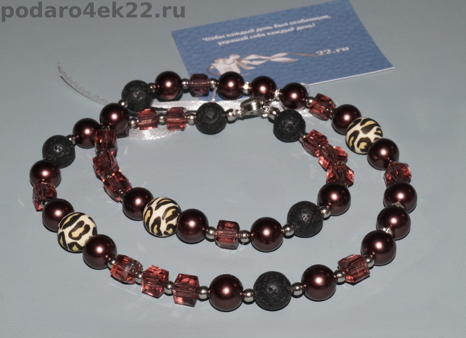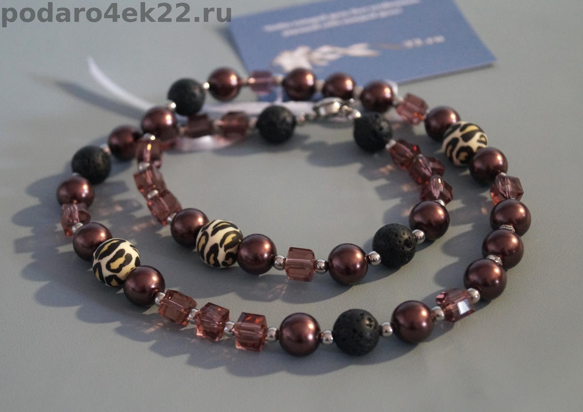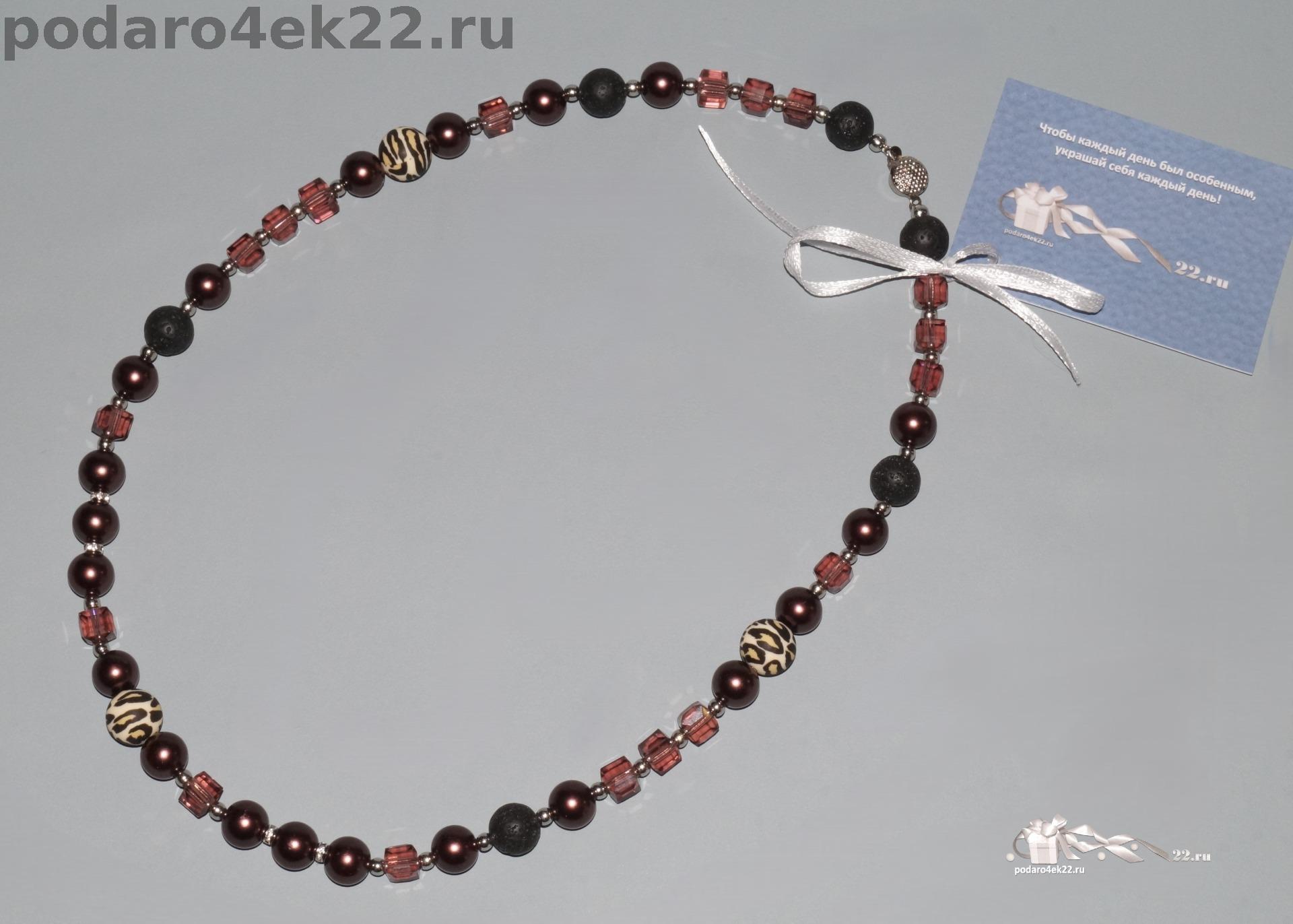 Авт-048. Бусы "Шоколадный гламур" с жемчугом майорка, лавой и леопардовыми шариками.