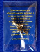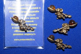 т-04. Латунная кошельковая мышка с ложкой и янтариком.