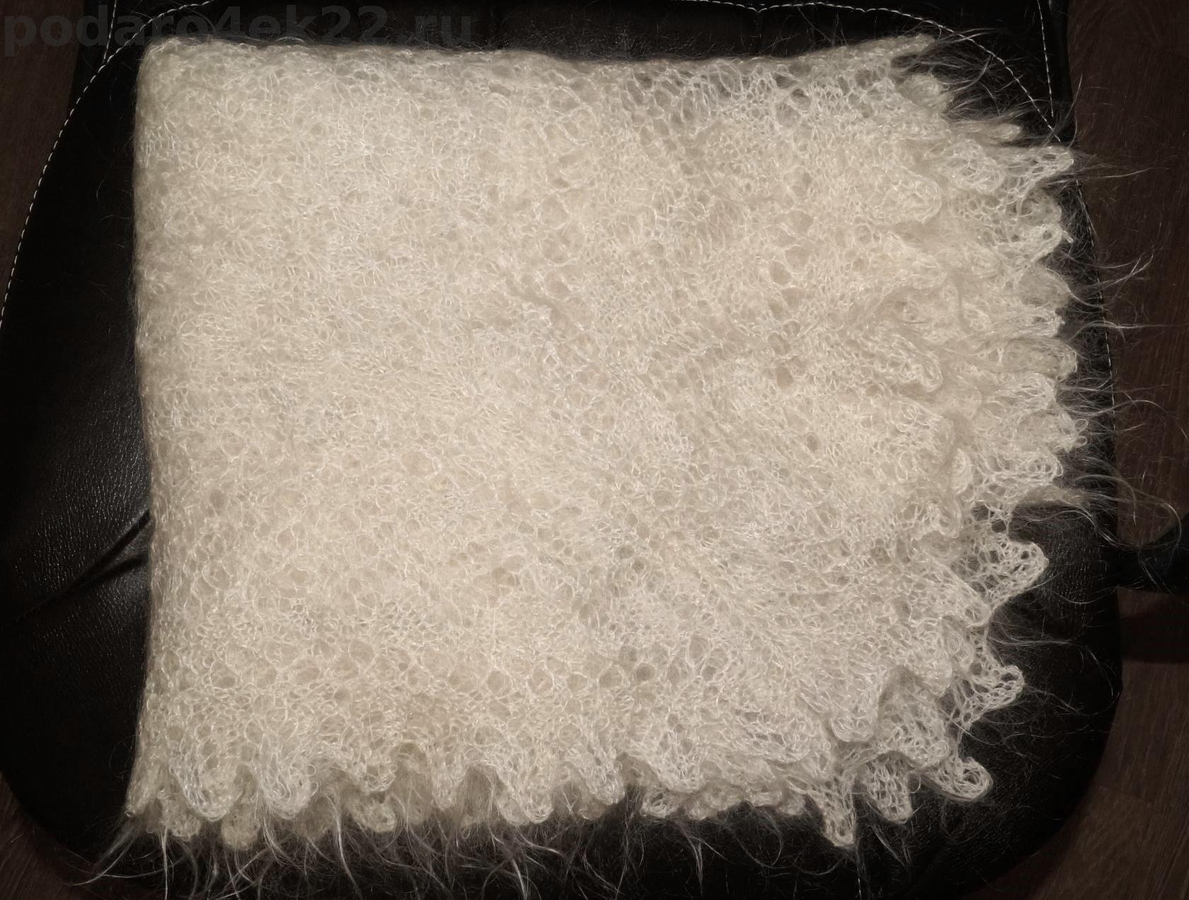Белый большой пуховый платок. Плотная паутинка из 100 % козьего пуха. Плотный, толстый, теплый. Размер 120 х 120 см. Бесплатна пересылка почтой или Озон доставкой.