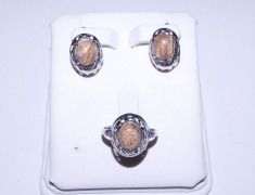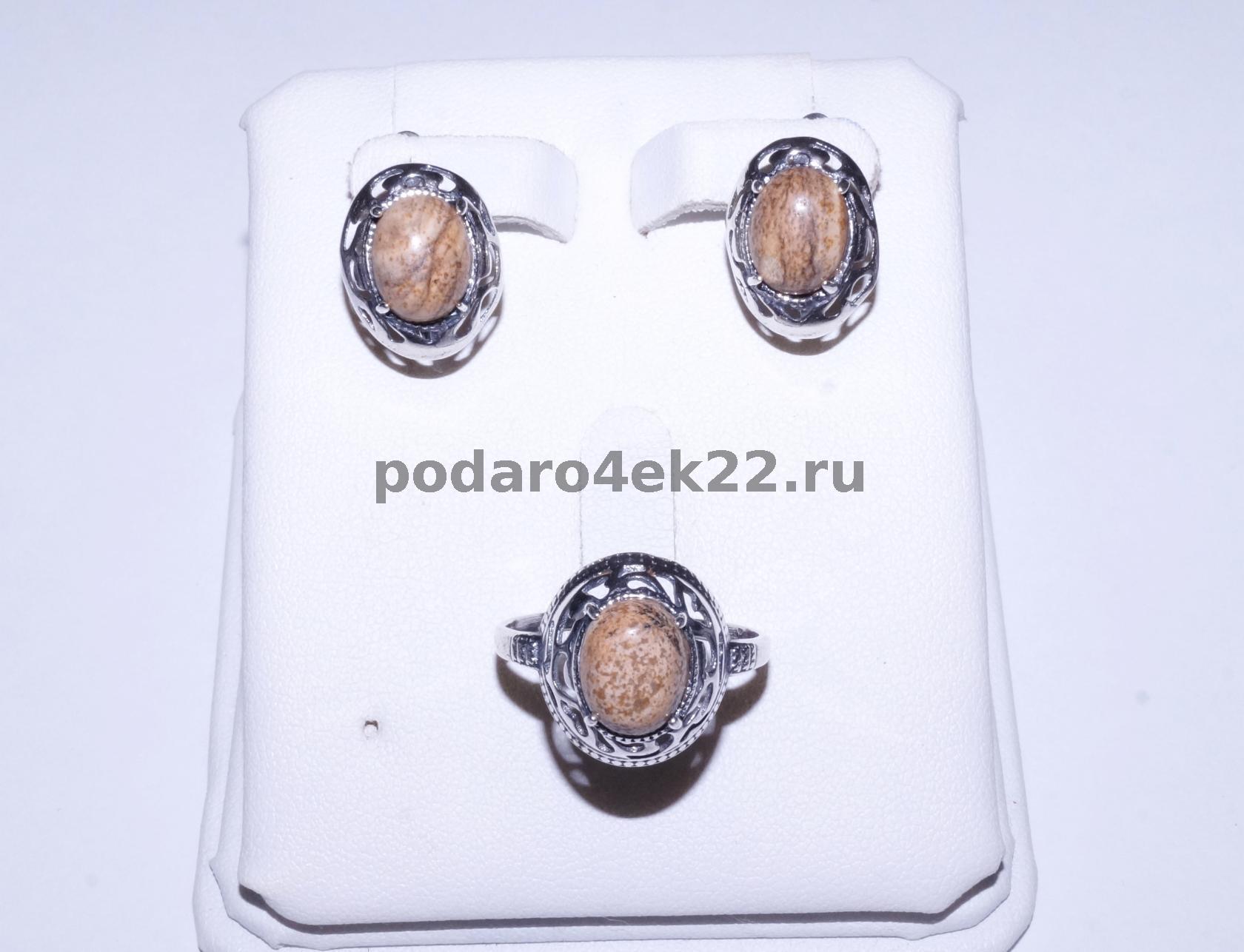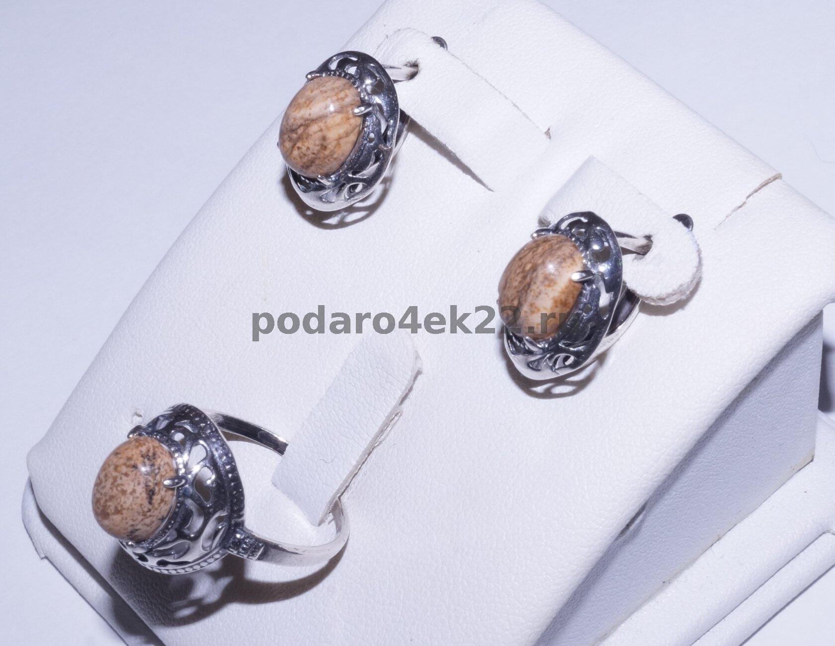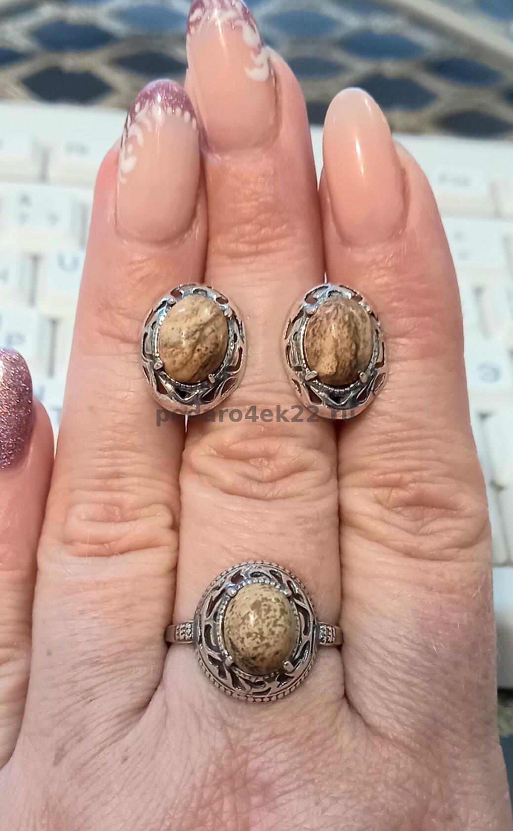 нк-0154. Серьги и кольцо с песочной яшмой. 19 разм.