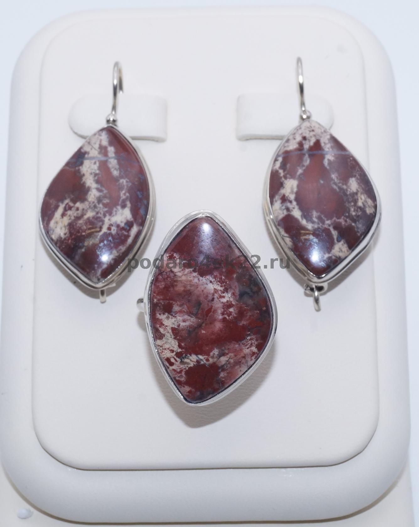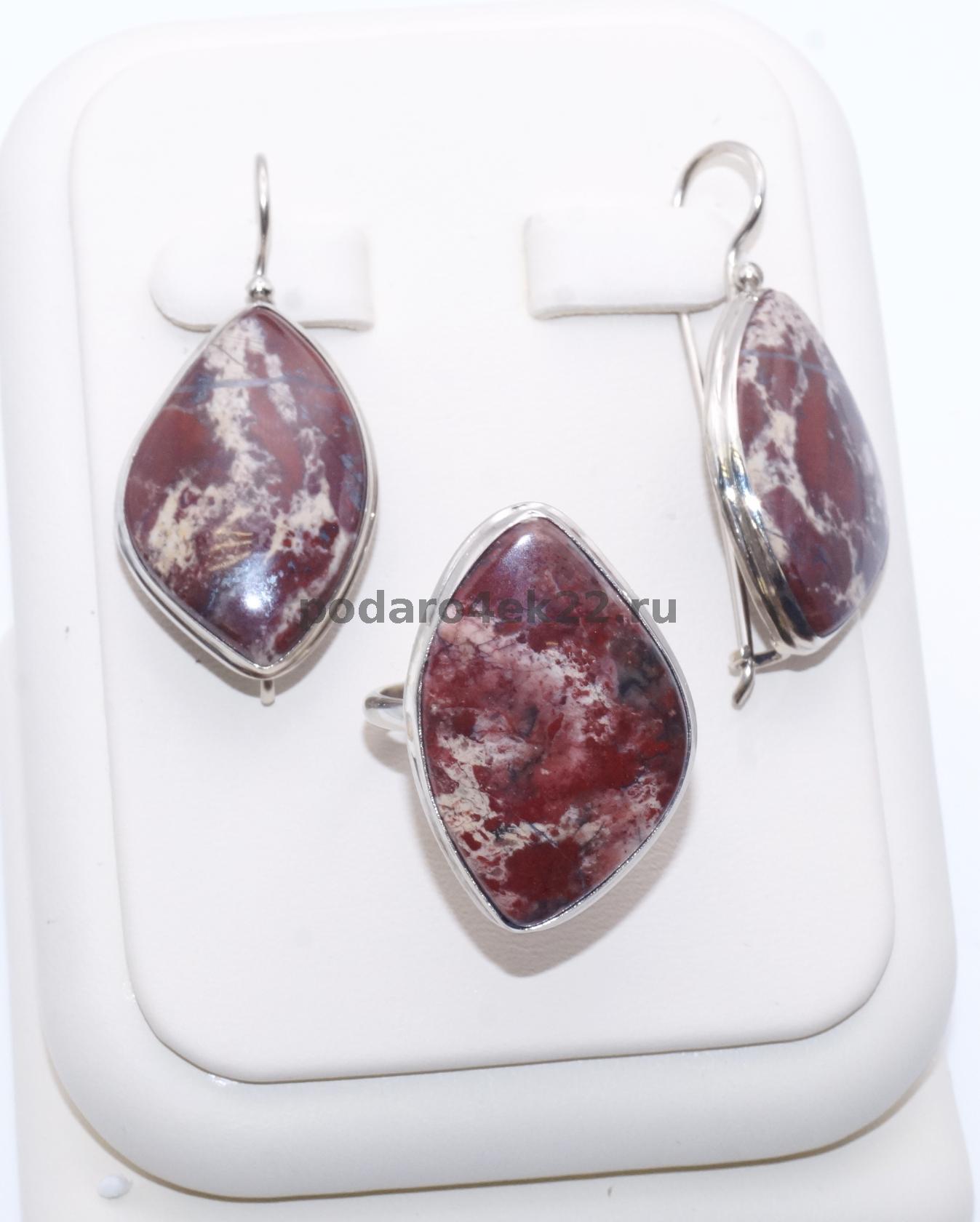 нк-0161. Серьги и кольцо с красной яшмой. 18,5-19,5 разм.
