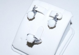 Мелкий комплект с белым перламутром в мельхиоре. Проба отдела технического контроля. Длина серёжек 2 см, камень 1 см. замочек английский. Размер перстня 17,5.