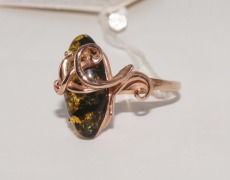 яс-150. Кольцо с зеленым и королевским янтарем в позолоте. Безразм.