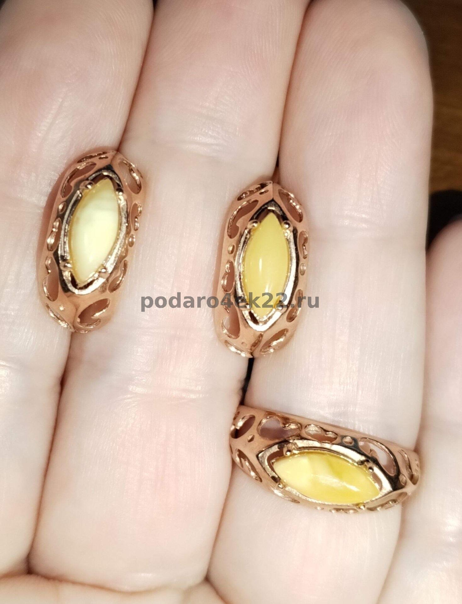 Комплект "Королевский ажур». Серьги и кольцо с натуральным винтажным королевским янтарем в позолоте (серебро 925 пробы, покрытое золотом 585 пробы). Размер кольца 17. Длина сережек 1,9 см. Янтарь 1 см. Вес 5,3 гр. Янтарь природный балтийский. По 2 пробы, бирки, пломбы. Производство Россия. Завод.