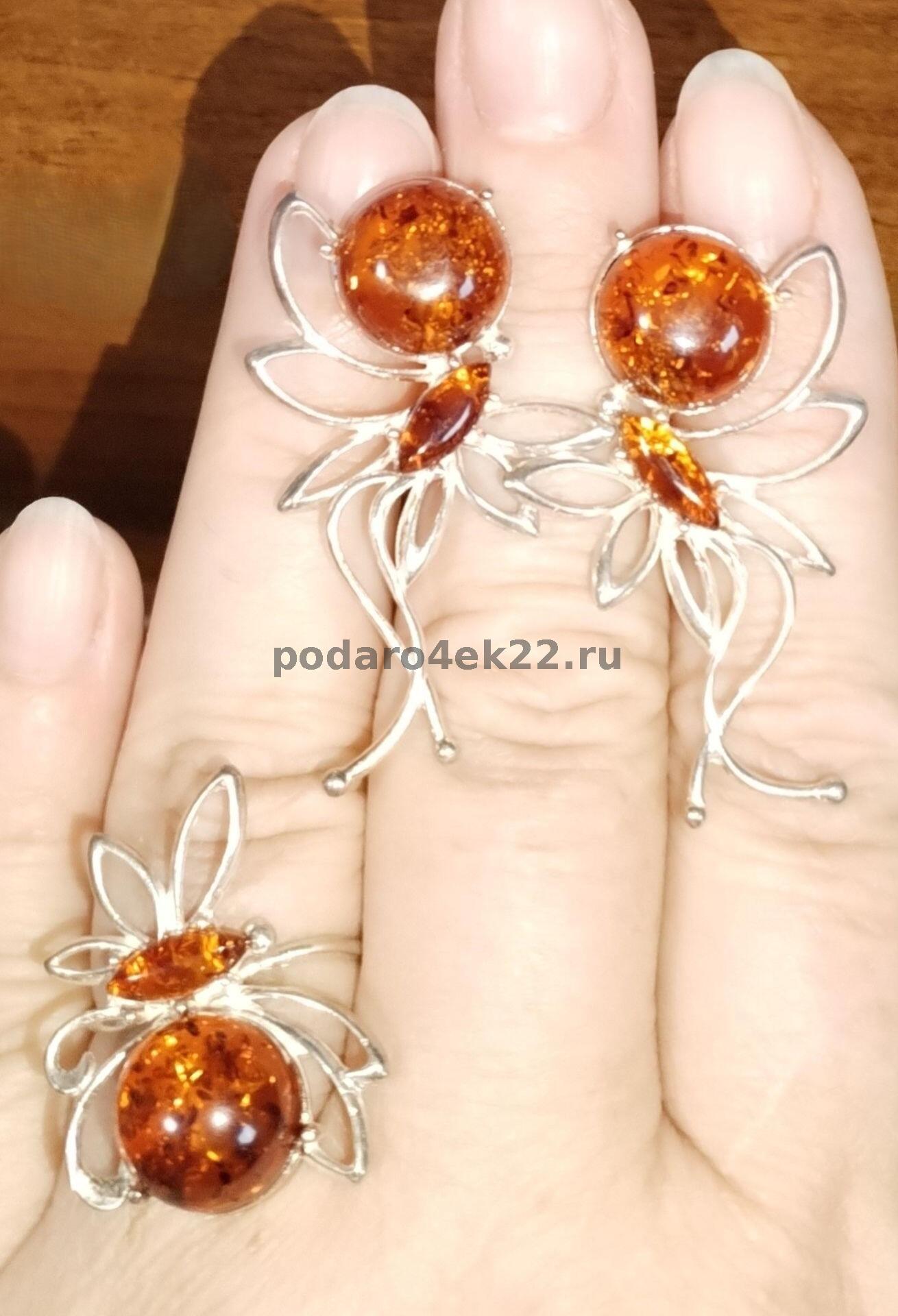яс-044. Комплект "Радость" с янтарем в серебре. 19,5 разм.