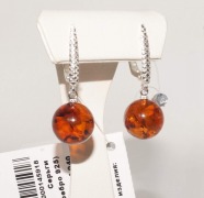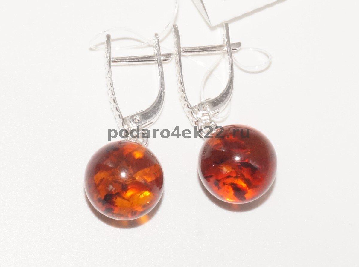 Серьги "Шарики" из натурального коньячного янтаря в серебре 925 пробы. Вес 4,14 гр. Длина серёжек 3,3 см. Янтарь 1,2 см. Янтарь природный балтийский. По 2 пробы, бирки, пломбы. Производство Россия. Завод.