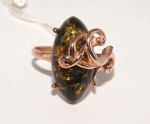 яс-164. Кольцо с зеленым янтарем в позолоте. 16,5 разм.
