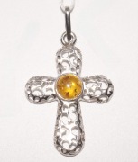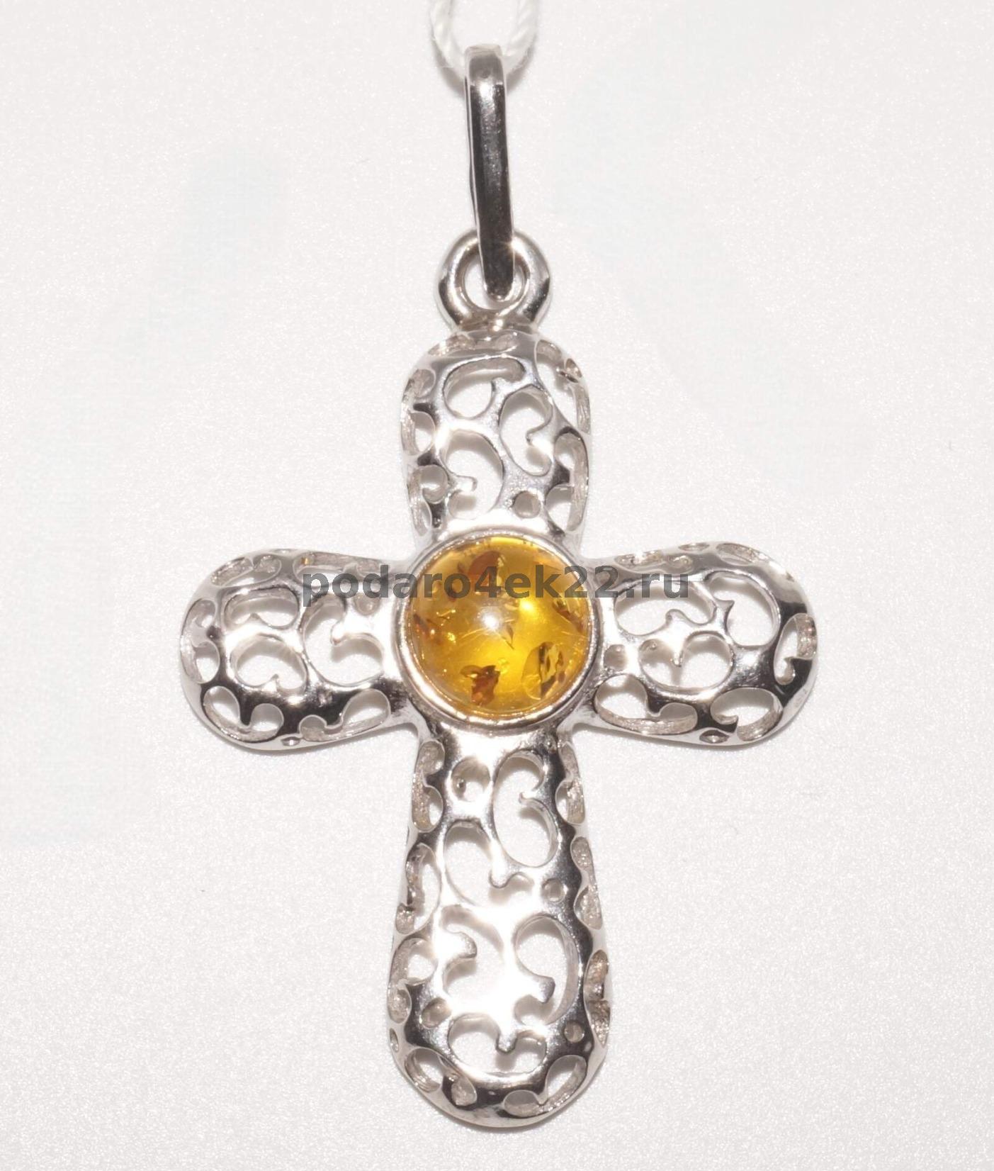 яс-177. Подвеска Ажурный крест с солнечным янтарем в серебре.