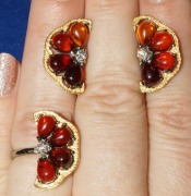 яс-018. Комплект "Дольки грейпфрута" с коньячно-вишнёвым янтарём. 17 разм.