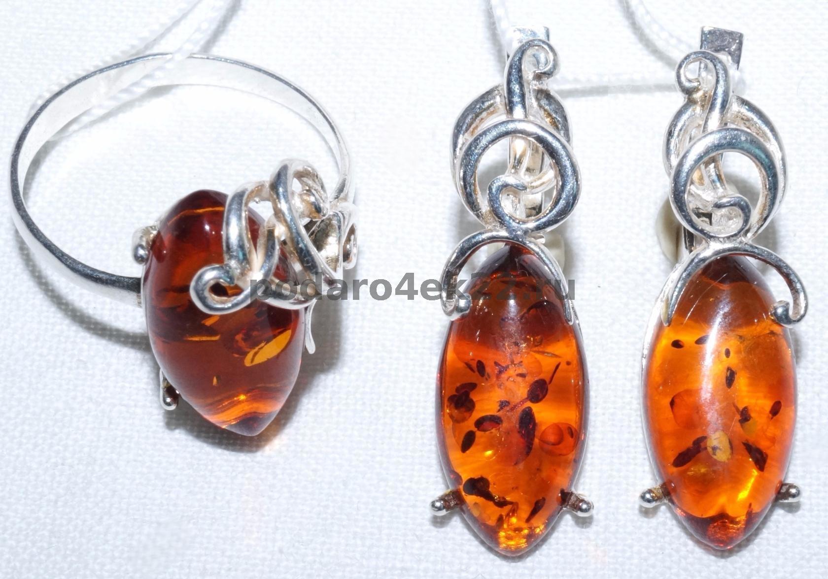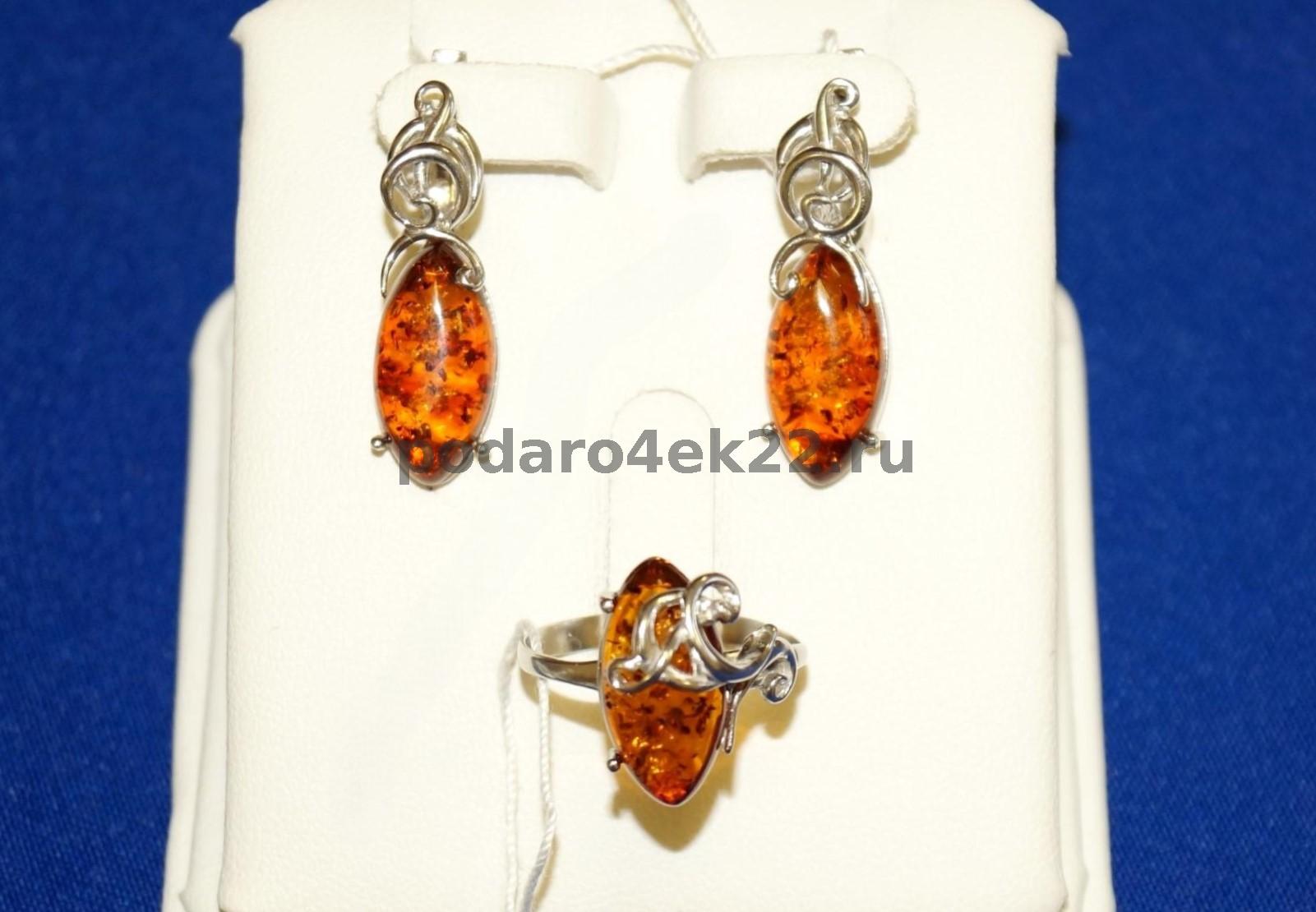 яс-063. Комплект "Муза" с коньячным янтарем в серебре. 19,5 разм.