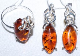Комплект "Муза". Серьги и кольцо с натуральным коньячным янтарем в серебре 925 пробы с родиевым покрытием. Вес 7,2 гр. Длина серёжек 3 см. Янтарь 1,8 см. Кольцо 19,5 размера. Янтарь природный балтийский. По 2 пробы, бирки, пломбы. Производство Россия. Завод.