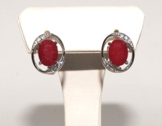 Серьги с натуральными рубинами и фианитами. Посеребрение (практически одно серебро) с родиевым покрытием, проба 925 . Длина серёжек 1,3 см. Камень 8 мм. Индия. Хорошее качество.