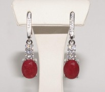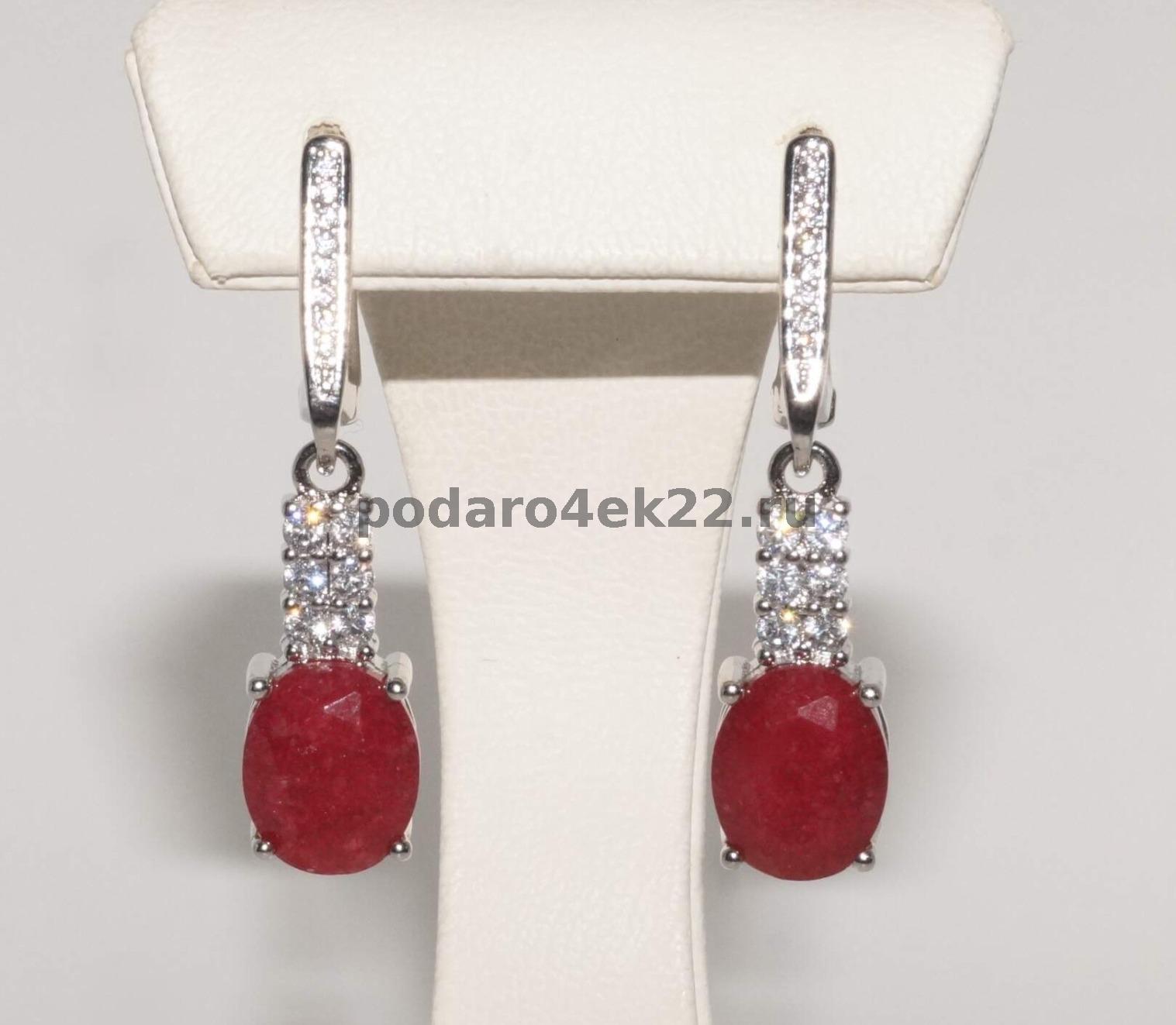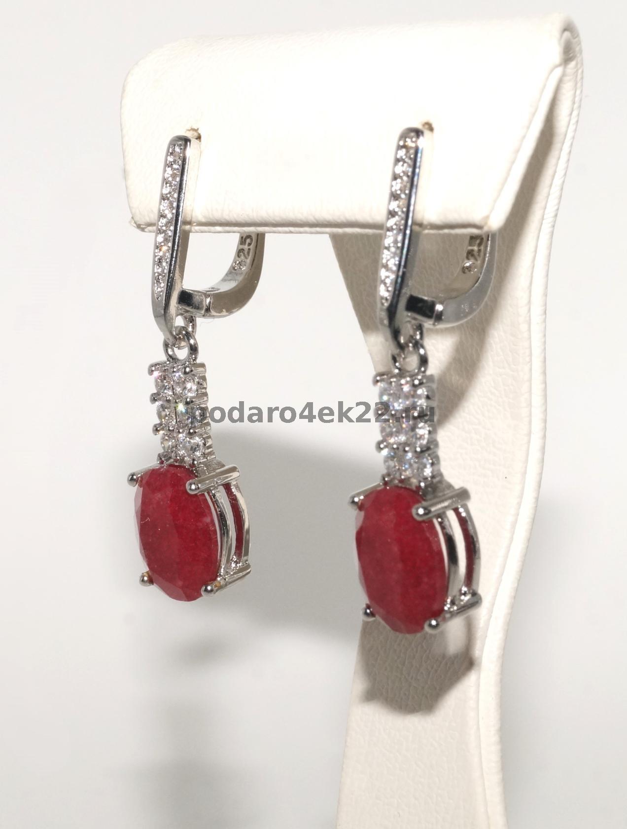 Серьги с натуральными рубинами и фианитами. Посеребрение (практически одно серебро) с родиевым покрытием, проба 925 . Длина серёжек 3,5 см, камень 1 cм. Индия. Хорошее качество.