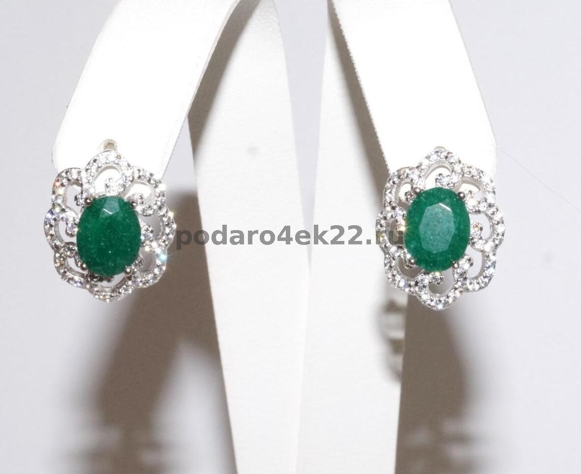 Серьги с натуральными изумрудами и фианитами в серебре, проба 925. Длина серёжек 1,9 см, камень 9 мм. Хорошее качество.