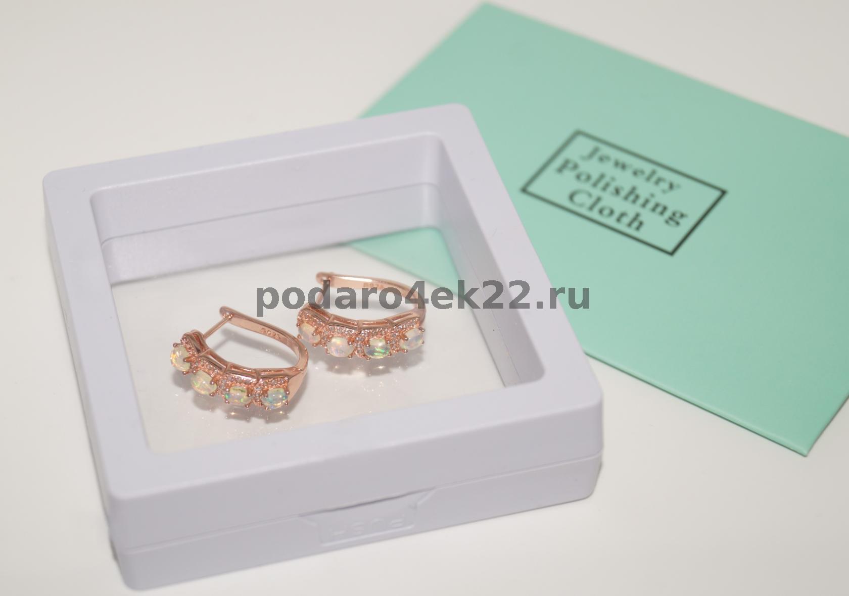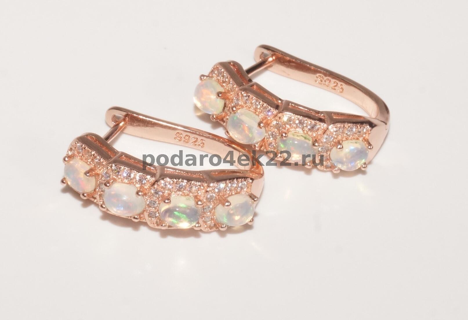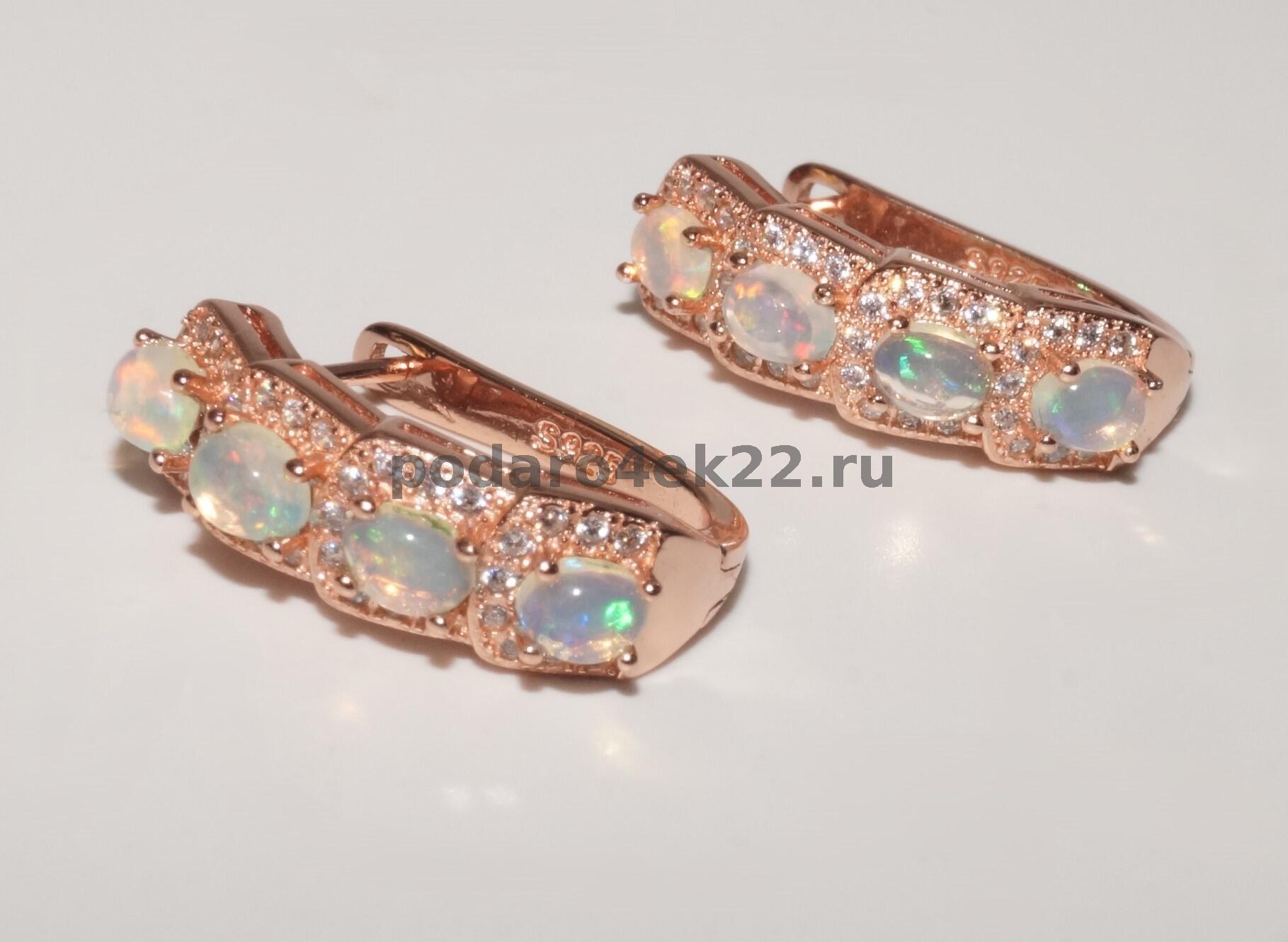 ск-0004-2. Серьги с эфиопскими опалами и фианитами в позолоте.