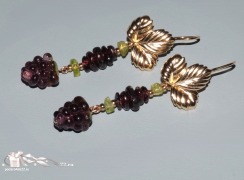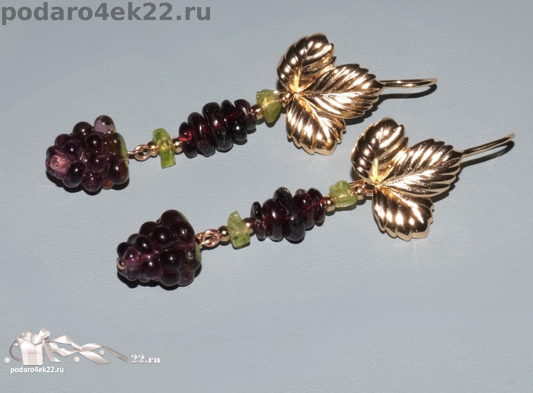 ск-0010-3. Длинные серьги "Ежевика" с гранатом, хризолитами и ягодками.