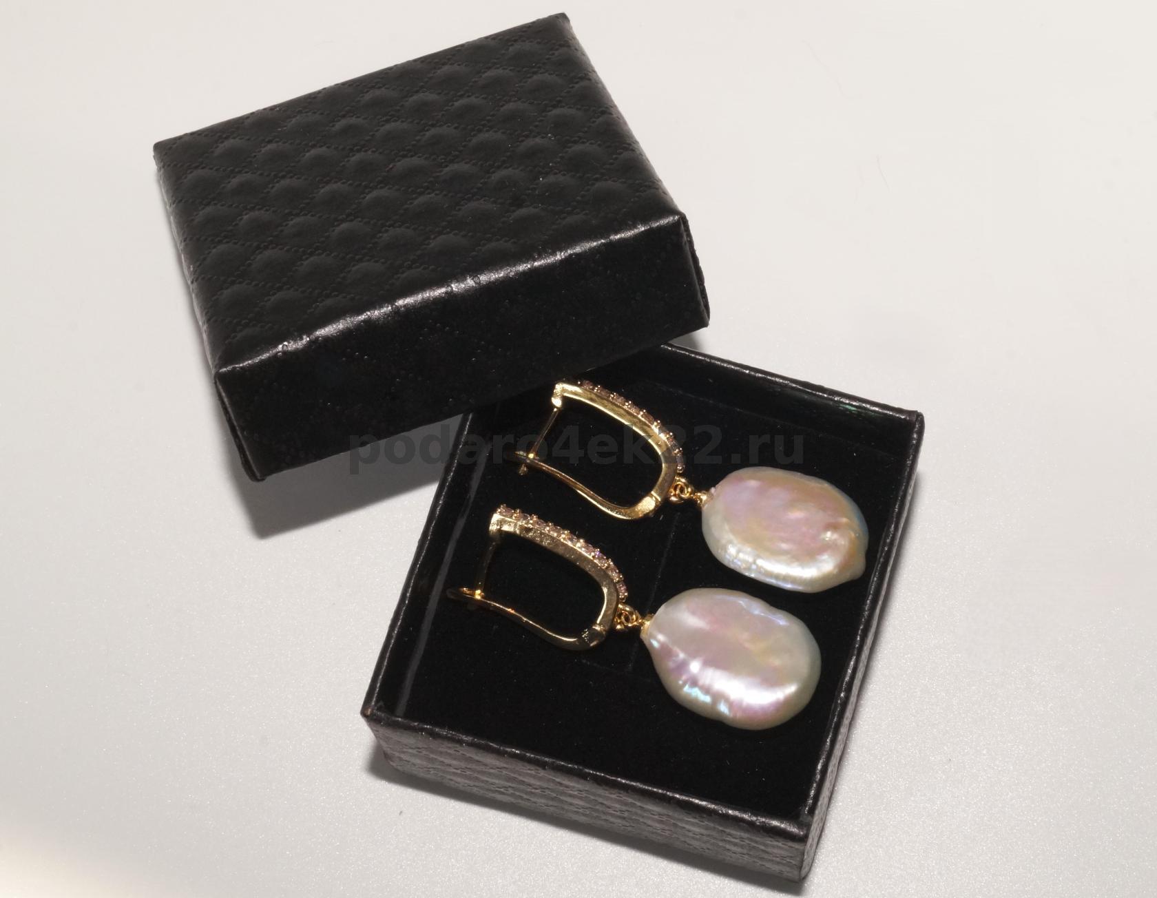 Серьги с натуральным жемчугом Барокко и фианитами. Позолота. Длина серёжек 4 см. Камень 1,8 х 1,4 cм. Индия. Хорошее качество.
