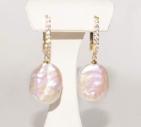 ск-0025-1. Серьги с жемчугом Барокко и фианитами.