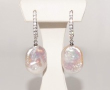 ск-0025-2. Серьги с жемчугом Барокко и фианитами.