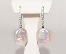 Серьги с натуральным барочным жемчугом. Родированная фурнитура, проба 925. Длина серёжек 4 см. Камень 1,8 х 1,4 cм. Индия. Хорошее качество.