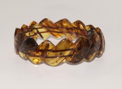 Браслет из натурального янтаря с включениями (кора и мох, возраст которых около 40 млн. лет). Резинка мягкая, хорошо тянется. Камни длиной 2 - 2,4 см. Янтарь природный балтийский. Вес 13,8 гр. Единственный экземпляр! В янтаре имеются ямочки, неровности, включения мха или коры, что подчёркивает подлинность янтаря и его природные особенности. Сейчас очень модно носить такие украшения. На фото один и тот же браслет с разных сторон.