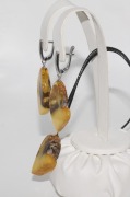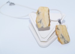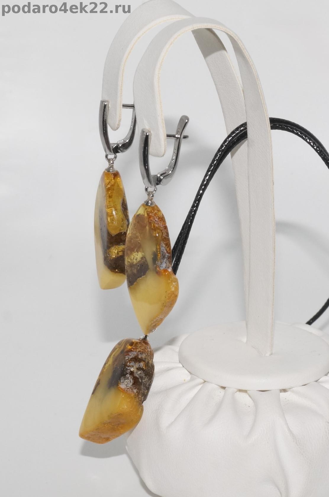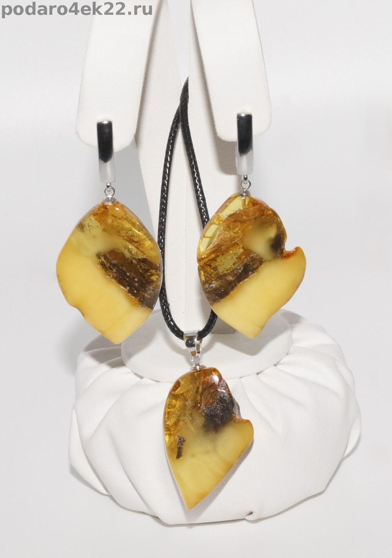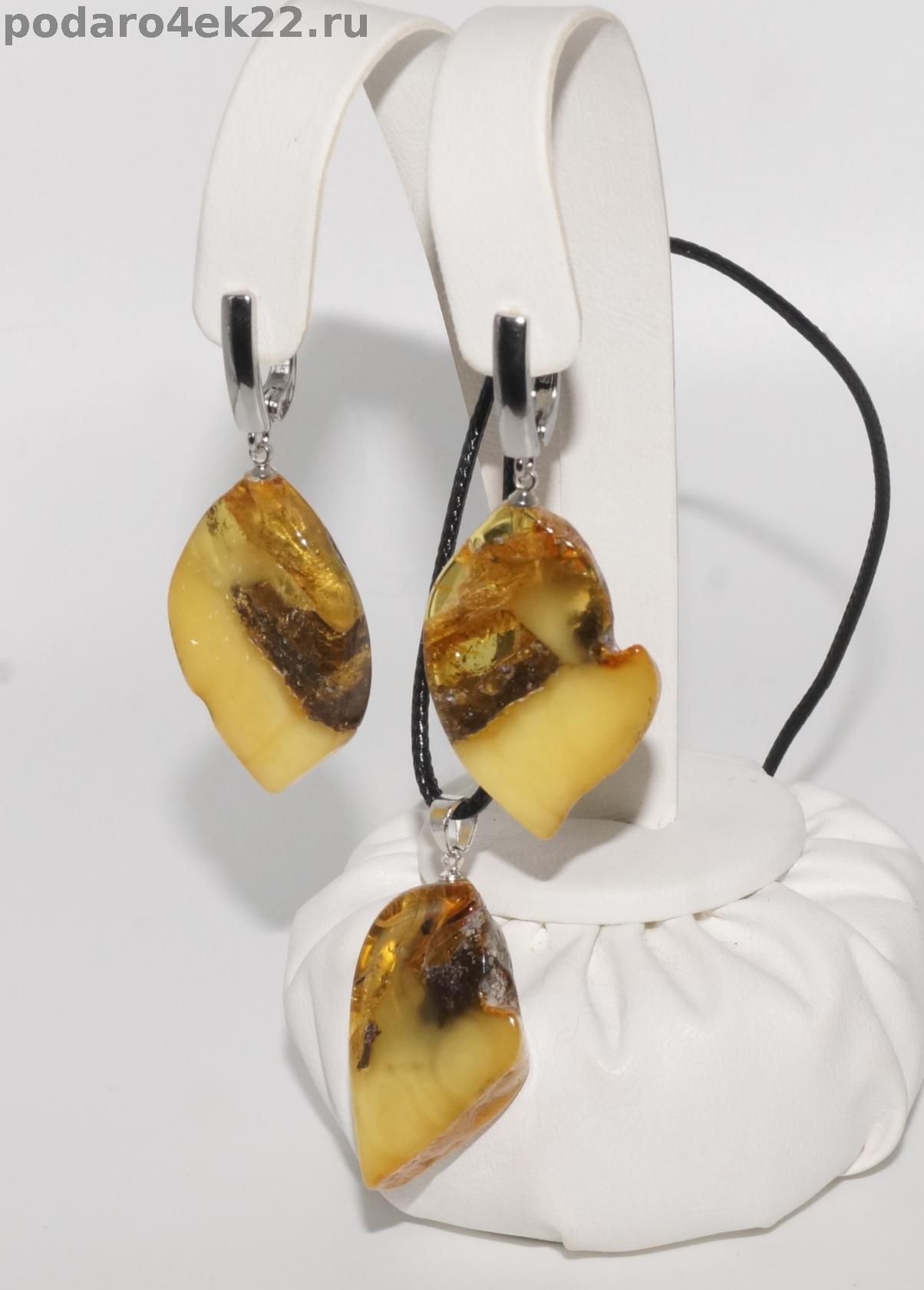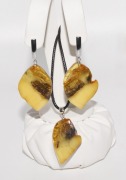 ян-018. Серьги и кулон из срезов белого янтаря с включениями.