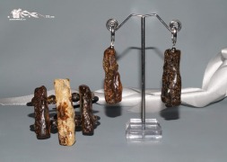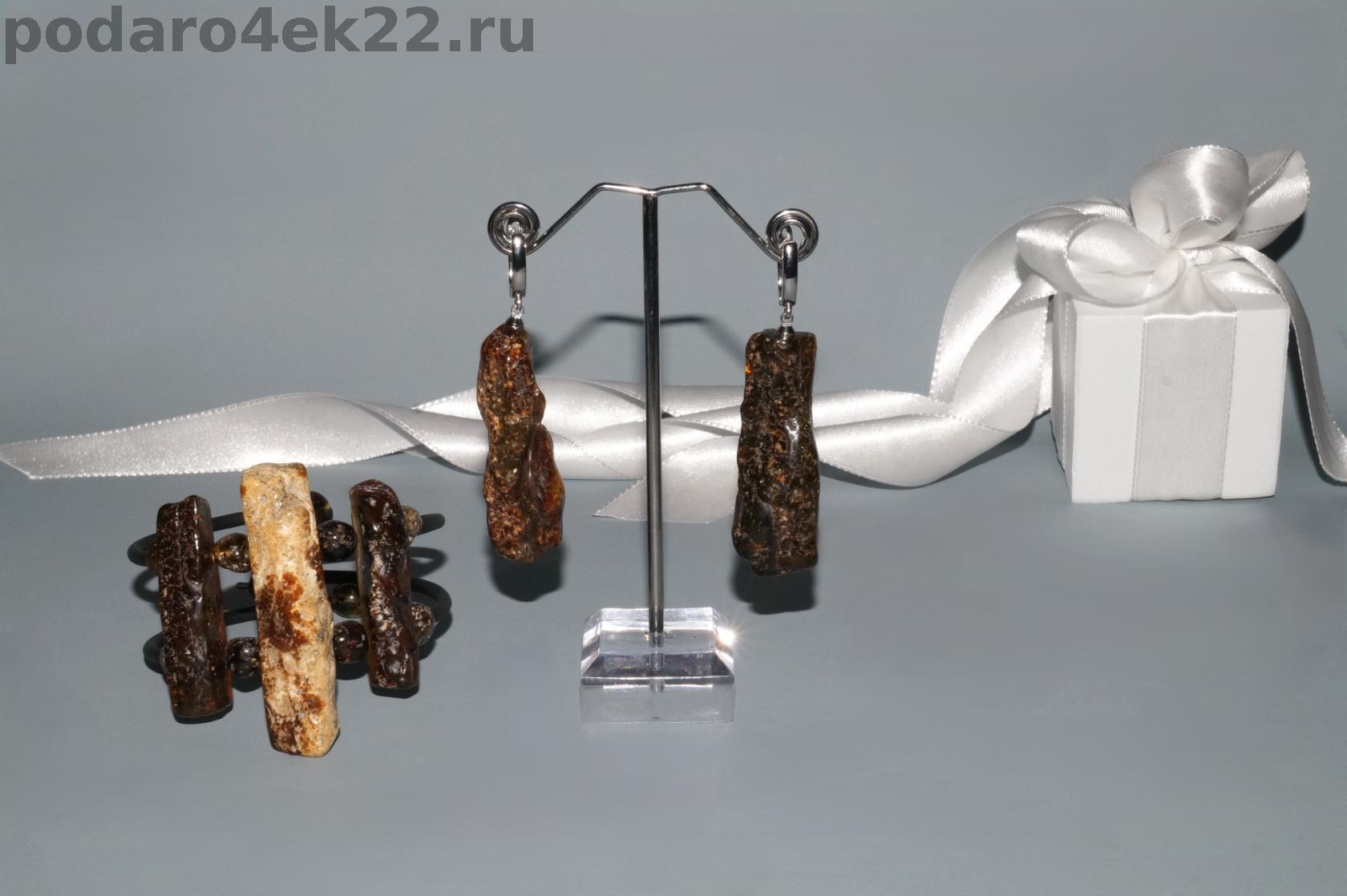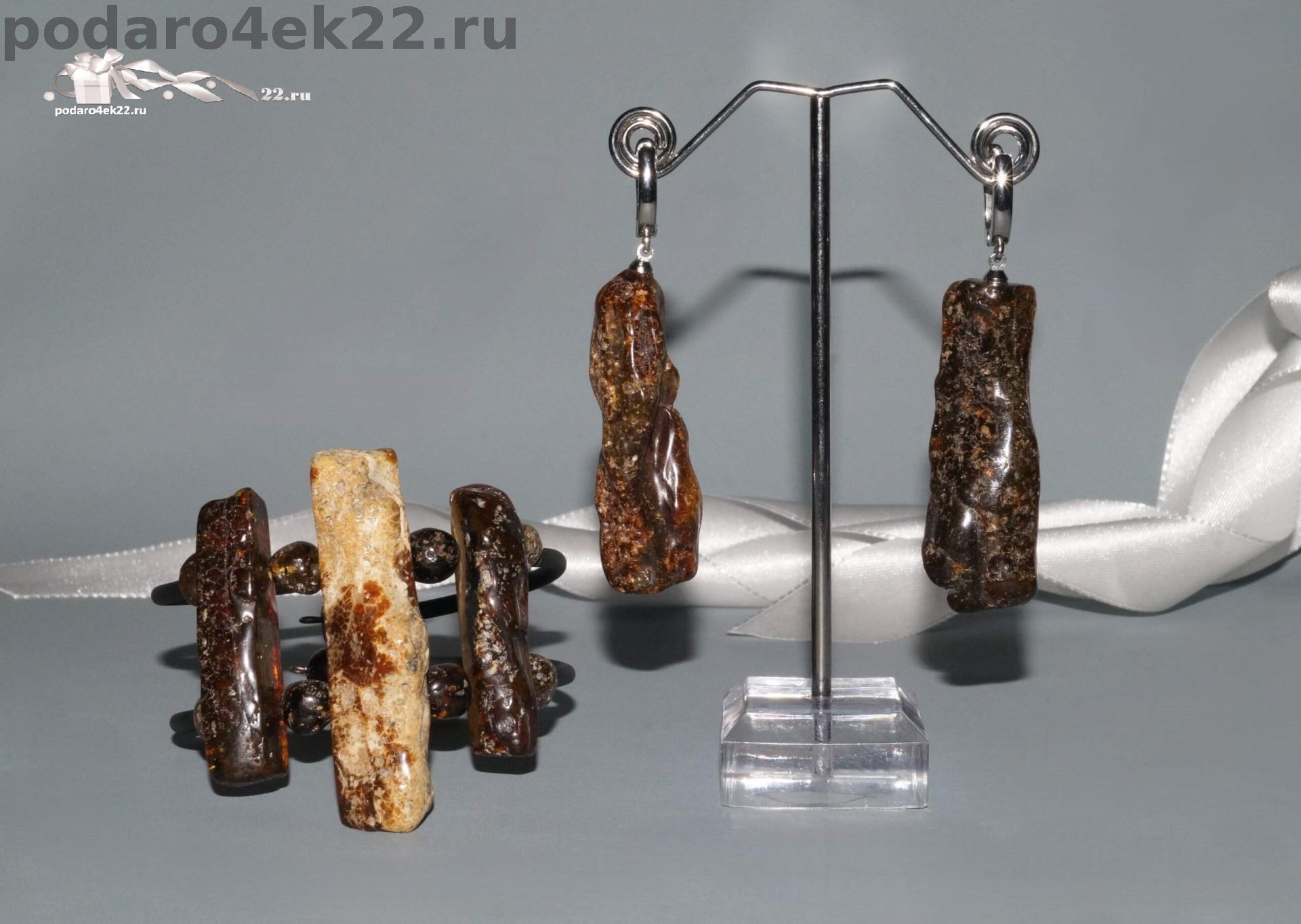 ян-022. Крупные серьги и браслет из перепелиного и дикого янтаря.