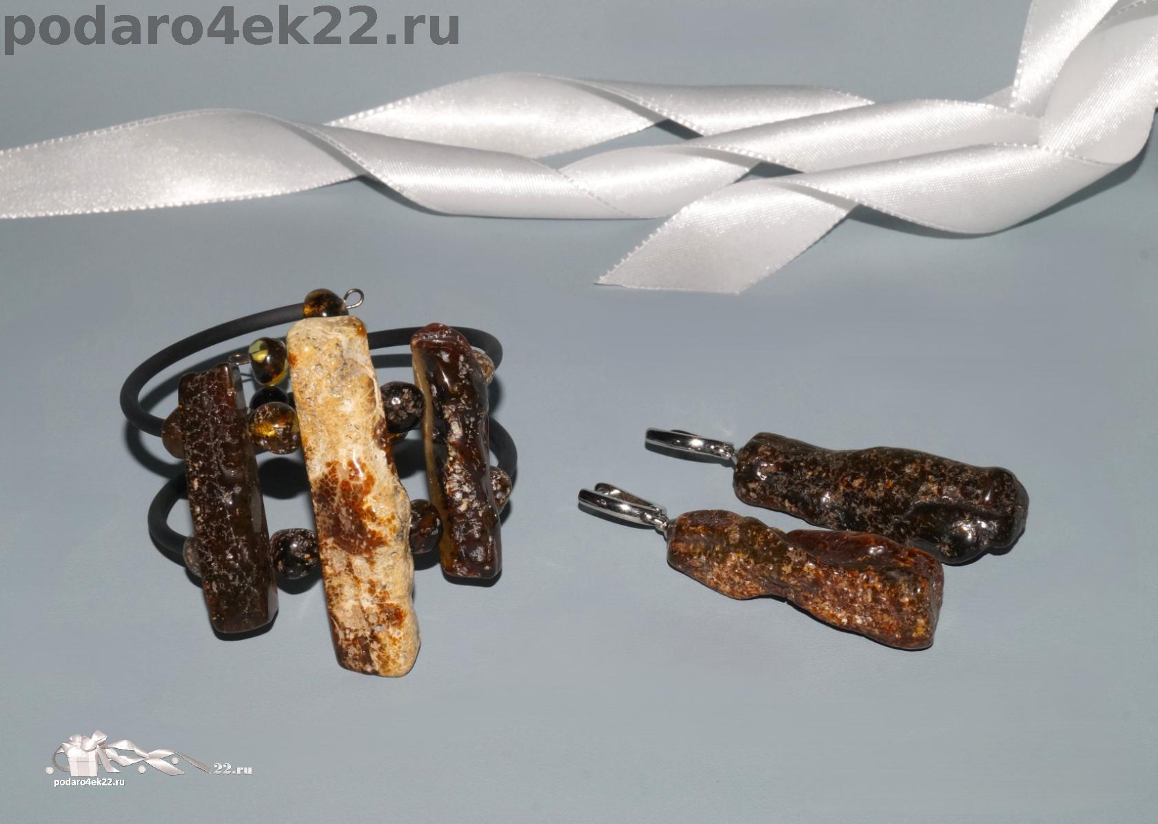 Комплект "Дикарка". Очень крупные серьги и браслет из натурального объемного перепелиного и дикого янтаря природной формы с включениями (мох и кора, возраст которых около 40 млн.лет). Длина серёжек 6,5 см, камни 4,8 см. Браслет регулируется, камни в браслете 5,5 и 4 см. Янтарь природный балтийский. Единственный и неповторимый экземпляр.