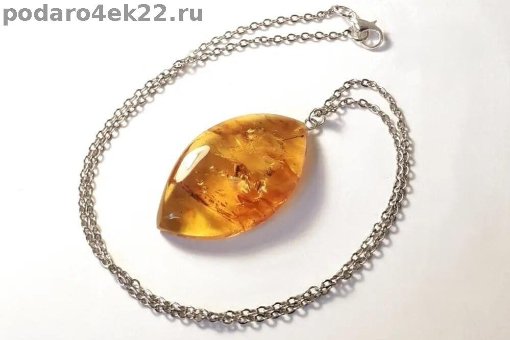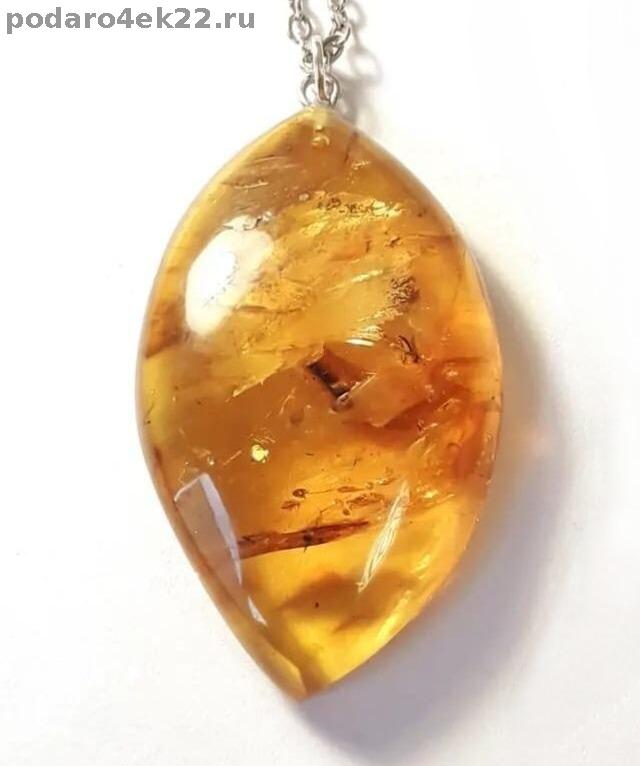 Крупный кулон "Лодочка" из натурального янтаря с инклюзами (2 комарика, кора и мох, возраст которых около 40 млн.лет). Размер камня 4,4 х 2,6 см. Янтарь природный балтийский. Цепь 51 см. В янтаре имеются природные ямочки, корочки, неровности и включения, что подчёркивает подлинность янтаря и его природные особенности. Сейчас очень модно носить такие украшения.