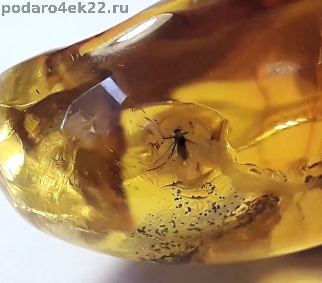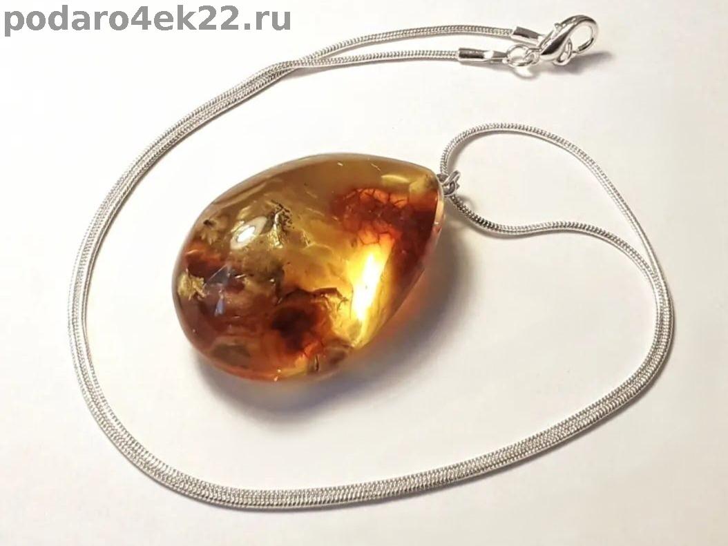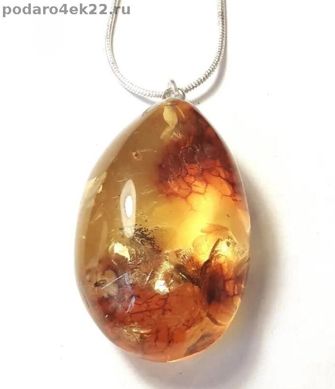 Кулон Капля из натурального янтаря с инклюзами (насекомые (комарик и мушка), кора и мох, возраст которых около 40 млн.лет). Длина кулона 4,5 см. Размер камня 3,9 х 2,5 см. Янтарь природный балтийский. В янтаре имеются природные ямочки, корочки, неровности и включения, что подчёркивает подлинность янтаря и его природные особенности. Сейчас очень модно носить такие украшения.